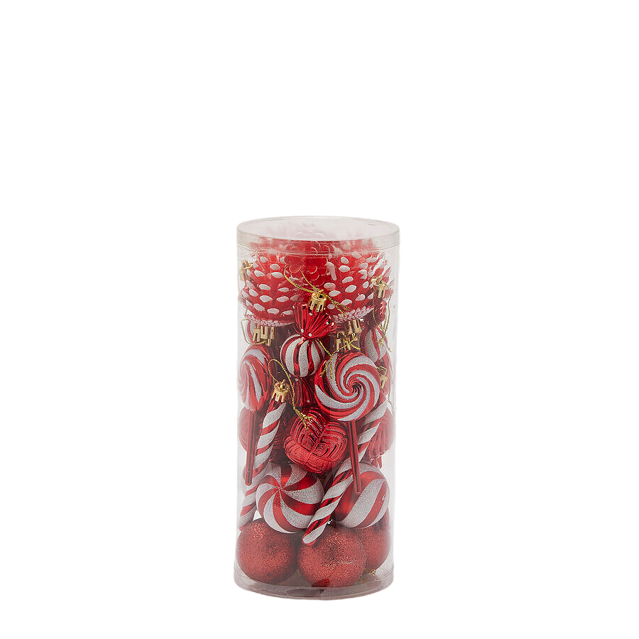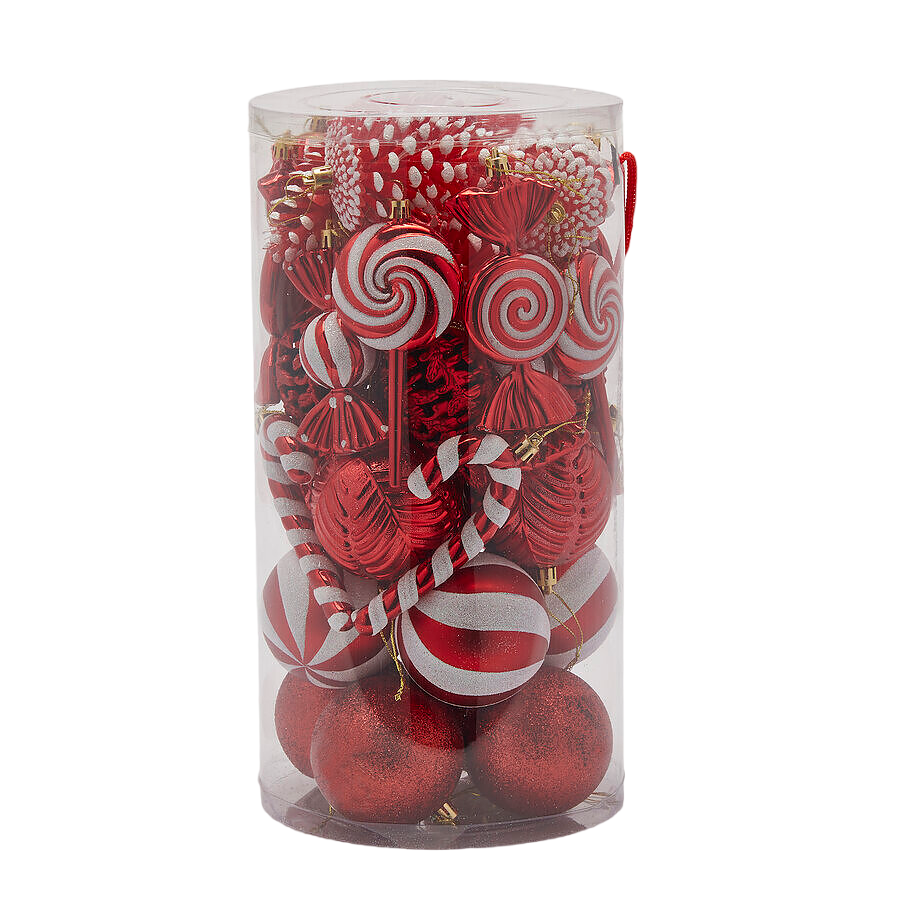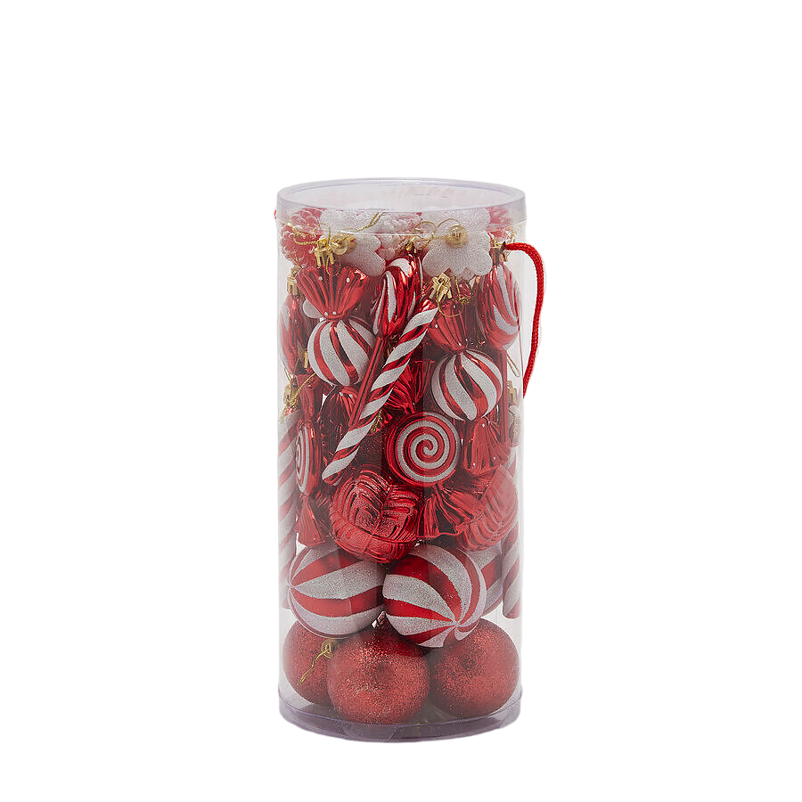 - Contenu du set : Mélange de décorations, pendentifs et boules de différentes formes et tailles.