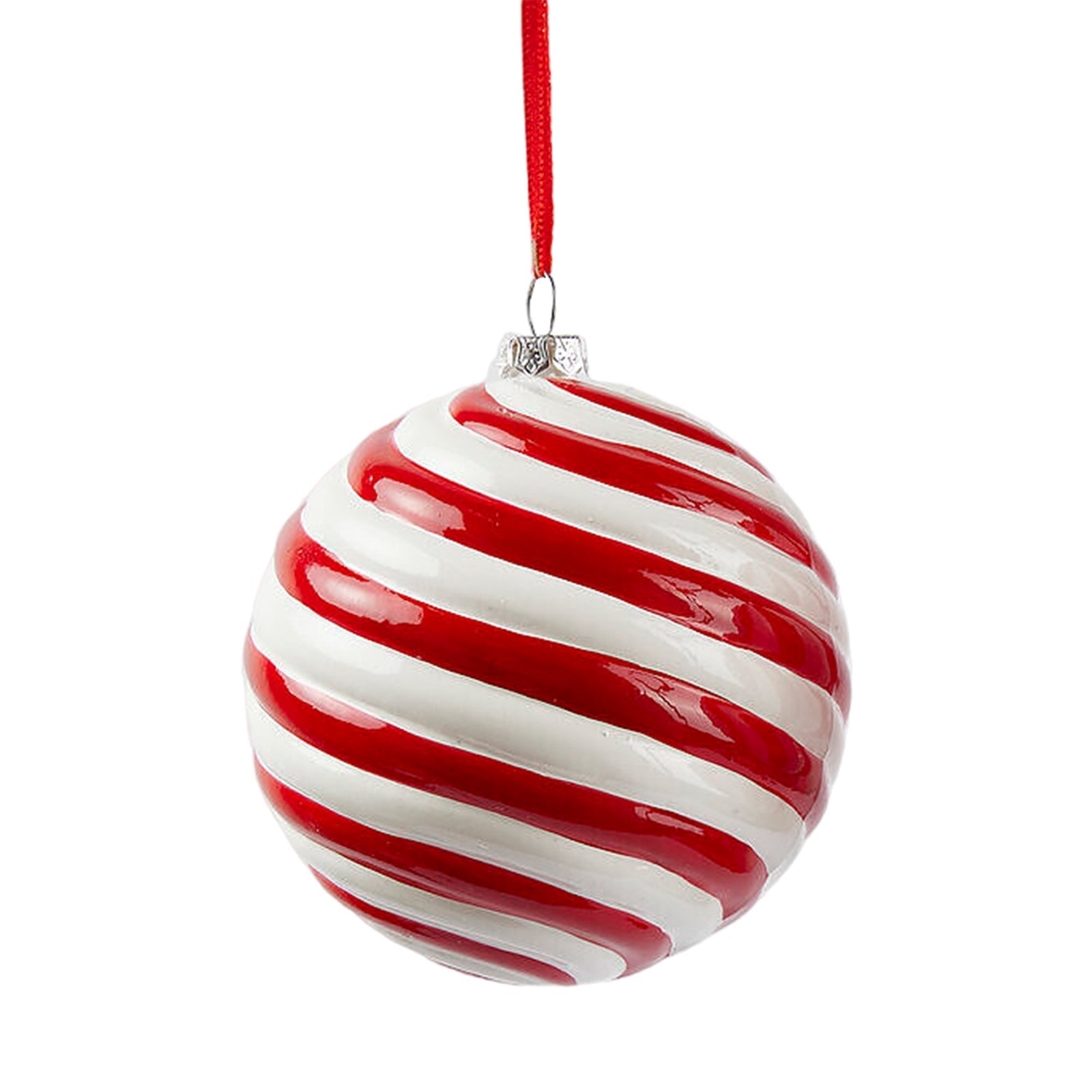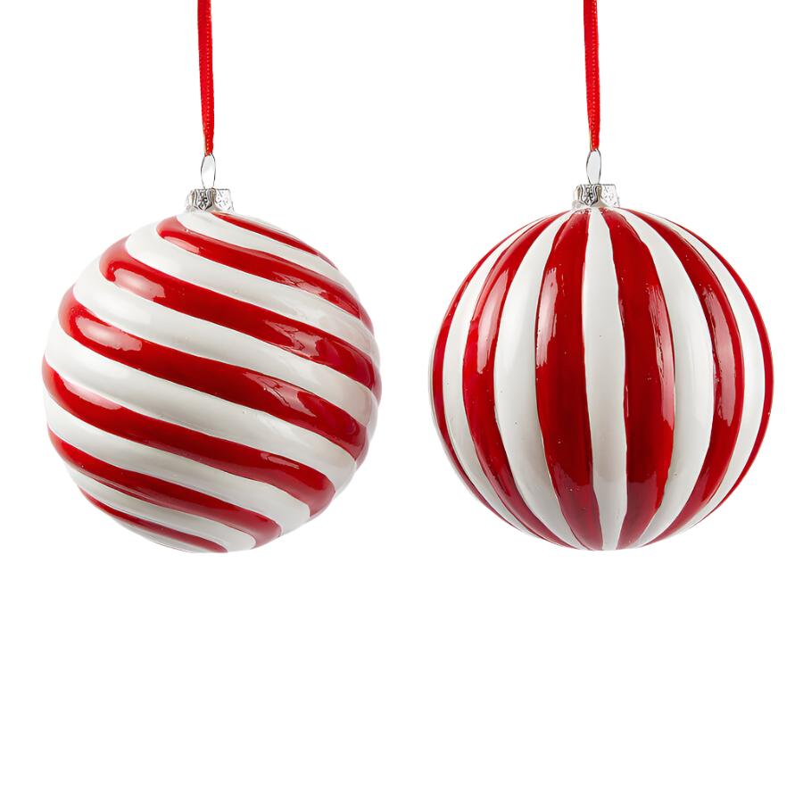 Boule de Noël "Candy" à bandes rouges et blanches, Ø 10 cm
