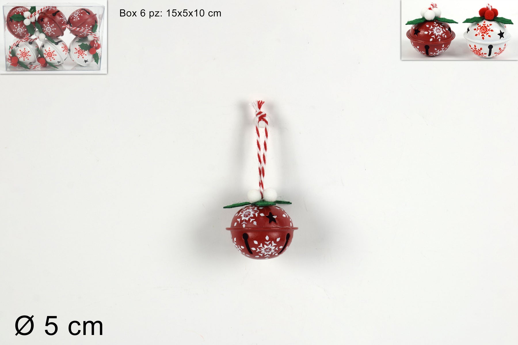Le métal utilisé pour ces boules de jingle est souvent fini avec des peintures brillantes ou pailletées dans des couleurs typiques de Noël comme le rouge, l'or, l'argent et le vert.