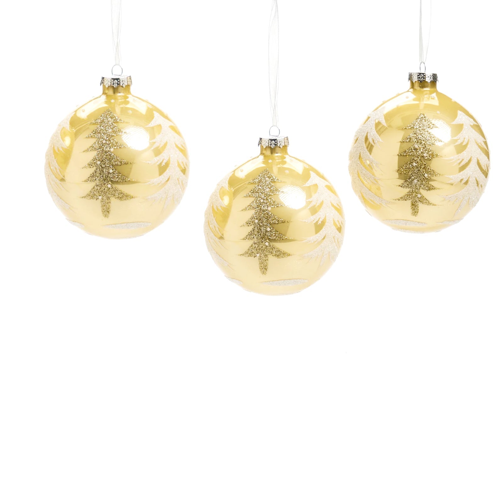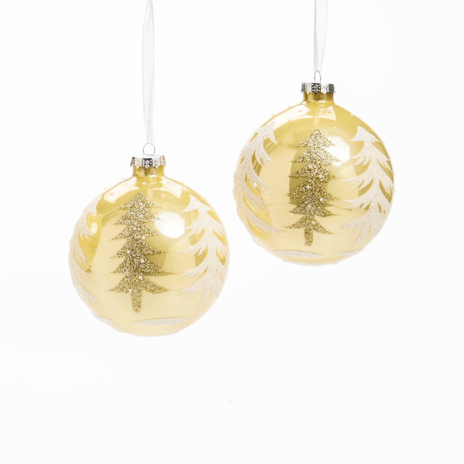 Boule en verre doré avec des arbres scintillants pour sapin de Noël