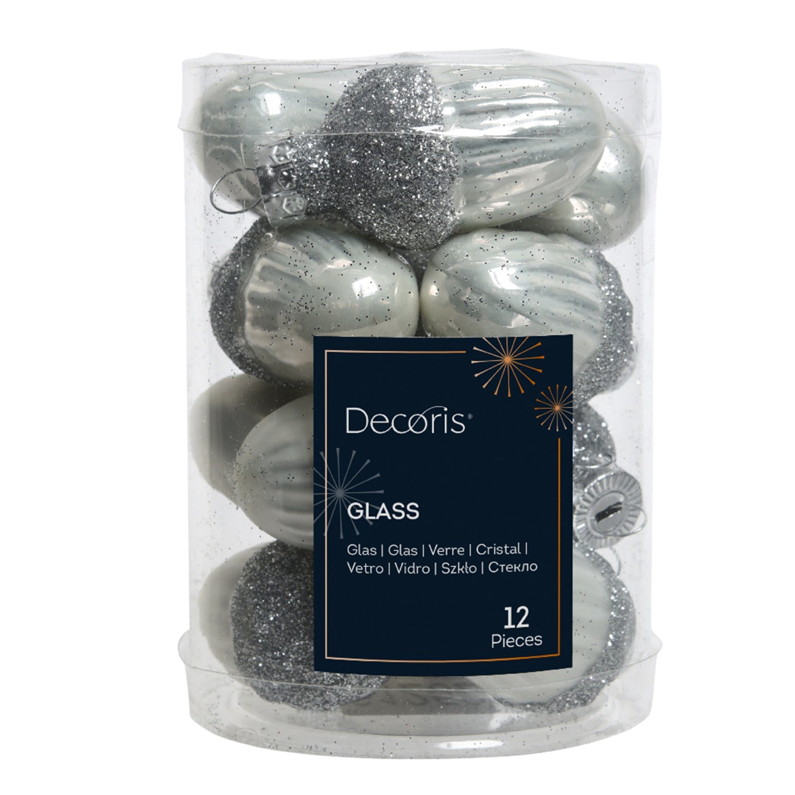 Boules de gland en verre d'arbre blanc, paquet de 12