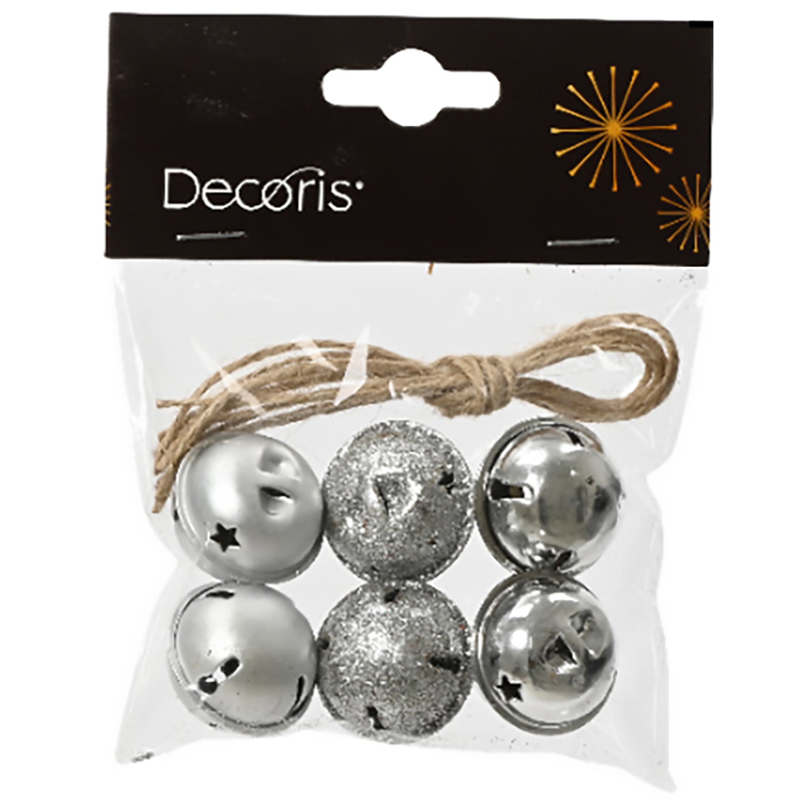 Boules de Noël avec clochette pailletée, fer, décoration 3 x 3 x 2,5 cm