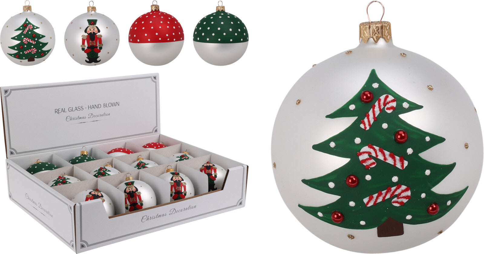 Boules de Noël en verre avec décorations, Ø 80 mm, 12 pièces