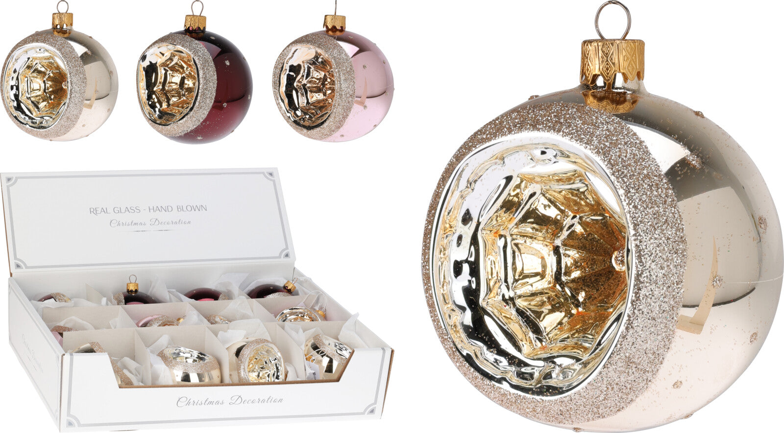 Boules de Noël en verre avec trou, Ø 80 mm, 12 pièces