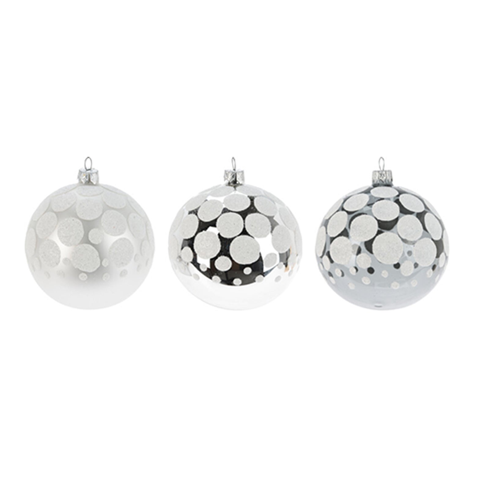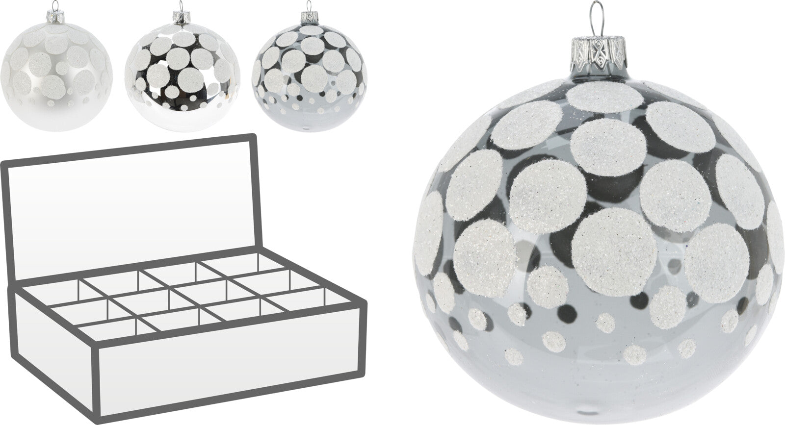 Boules de Noël, verre, points scintillants, Ø 80 mm, 12 pièces