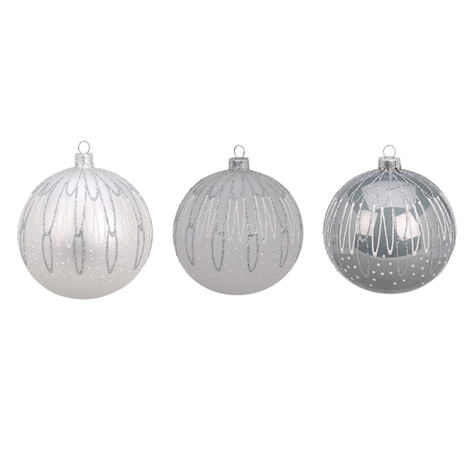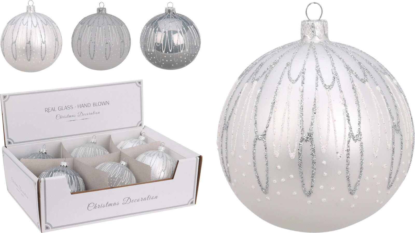 Boules de Noël en verre avec paillettes décoratives, Ø 100 mm, 6 pièces