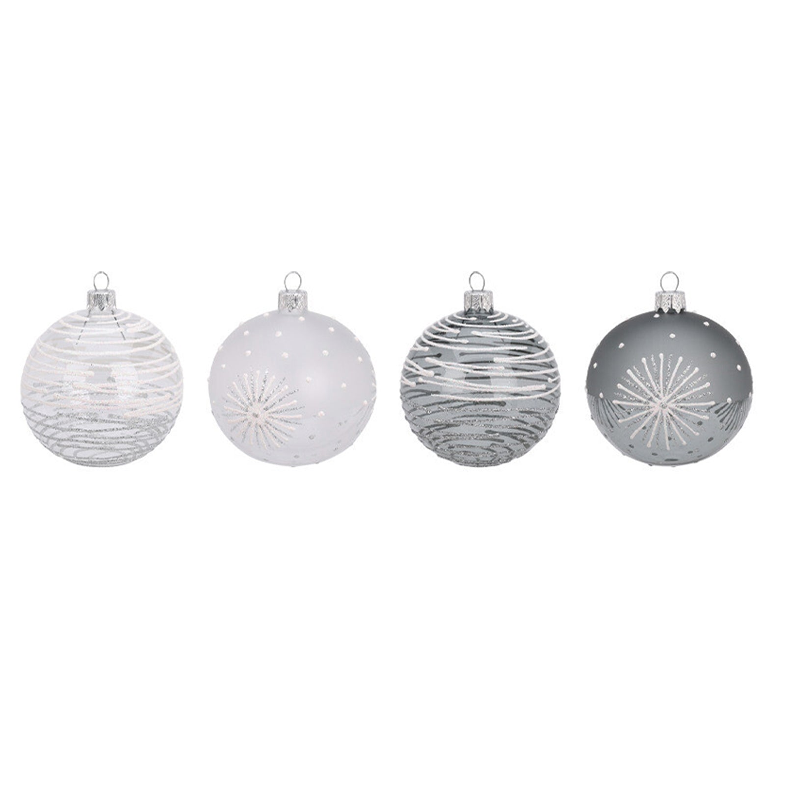 Boules de Noël en verre avec paillettes, Ø 80 mm, 12 pièces