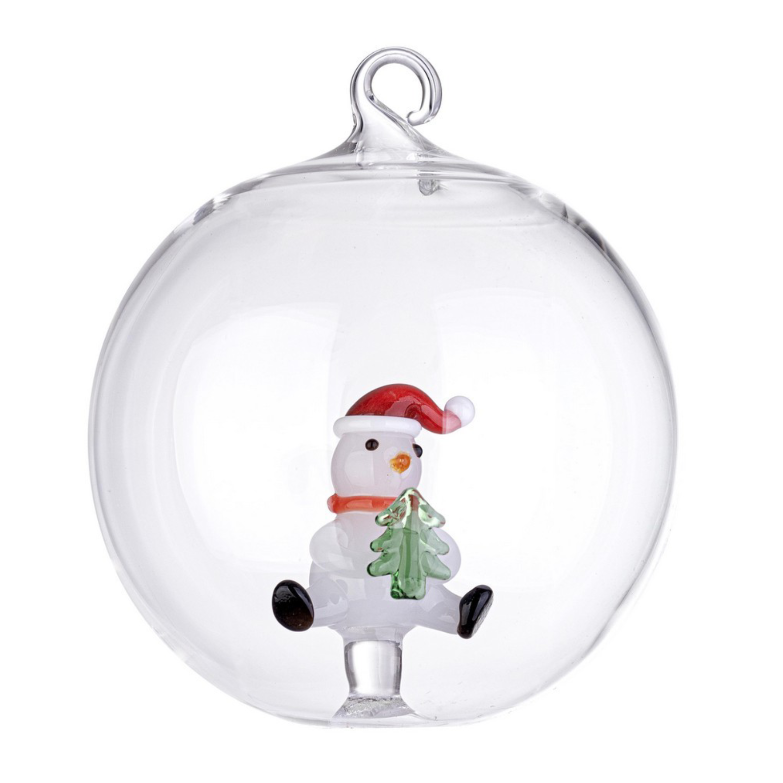 - Bonhomme de neige: Une sphère au design de bonhomme de neige, idéale pour évoquer l'ambiance hivernale et féerique des vacances.