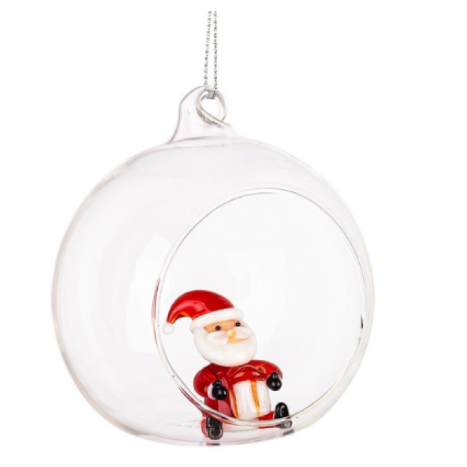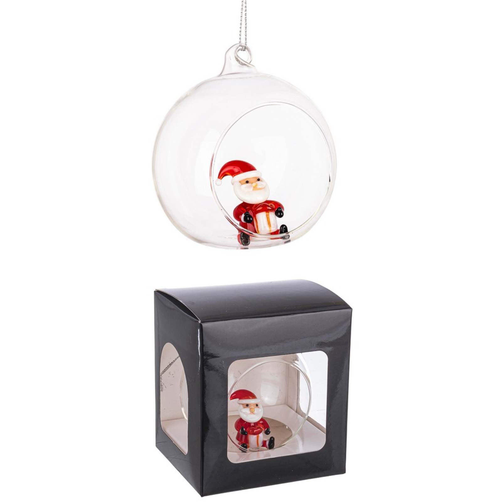 Troisième Sphère - Père Noël: Le Père Noël est le protagoniste de cette sphère, avec son costume rouge classique et sa barbe blanche. Cette décoration apporte l'enchantement et la magie de Noël.