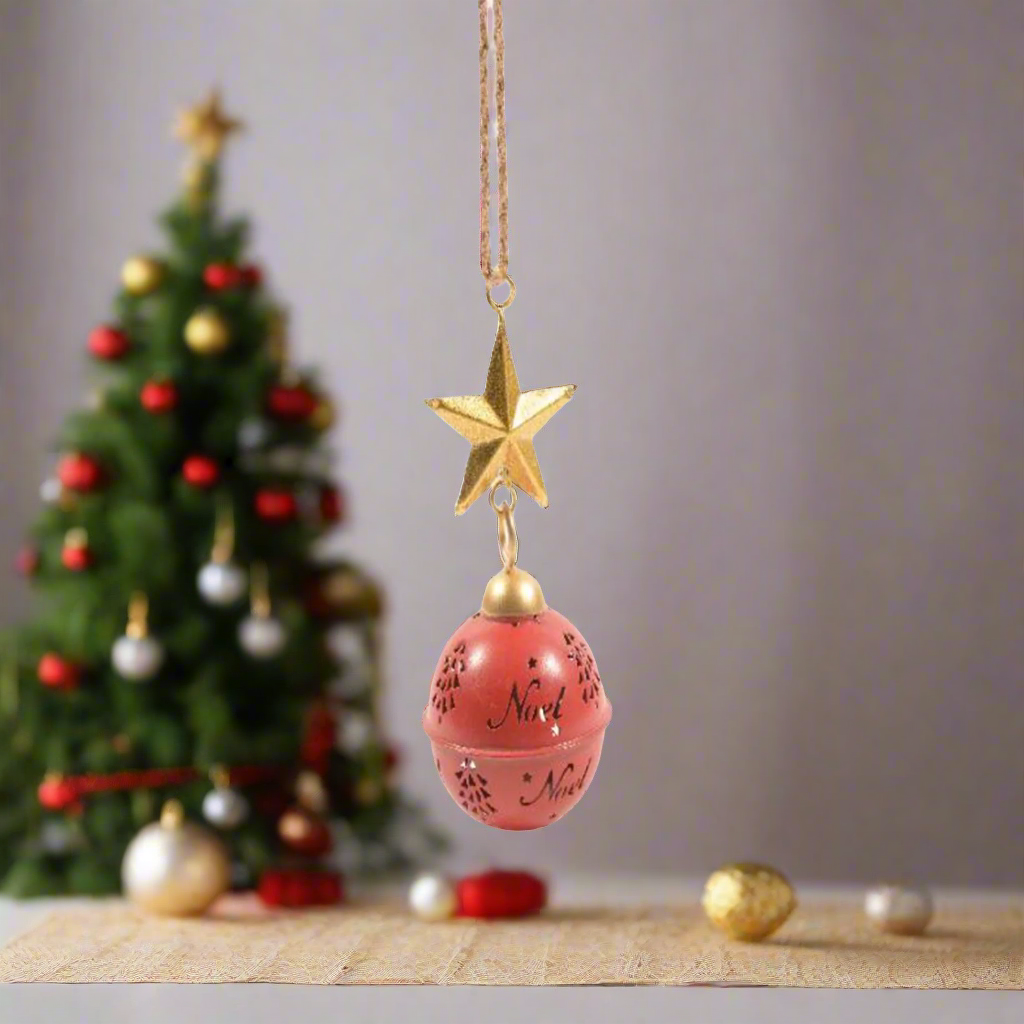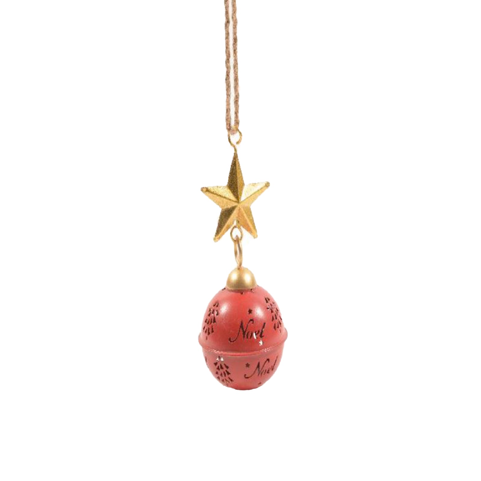 Suspension cloche avec étoile pour sapin de Noël Ø 8 x h 18 cm