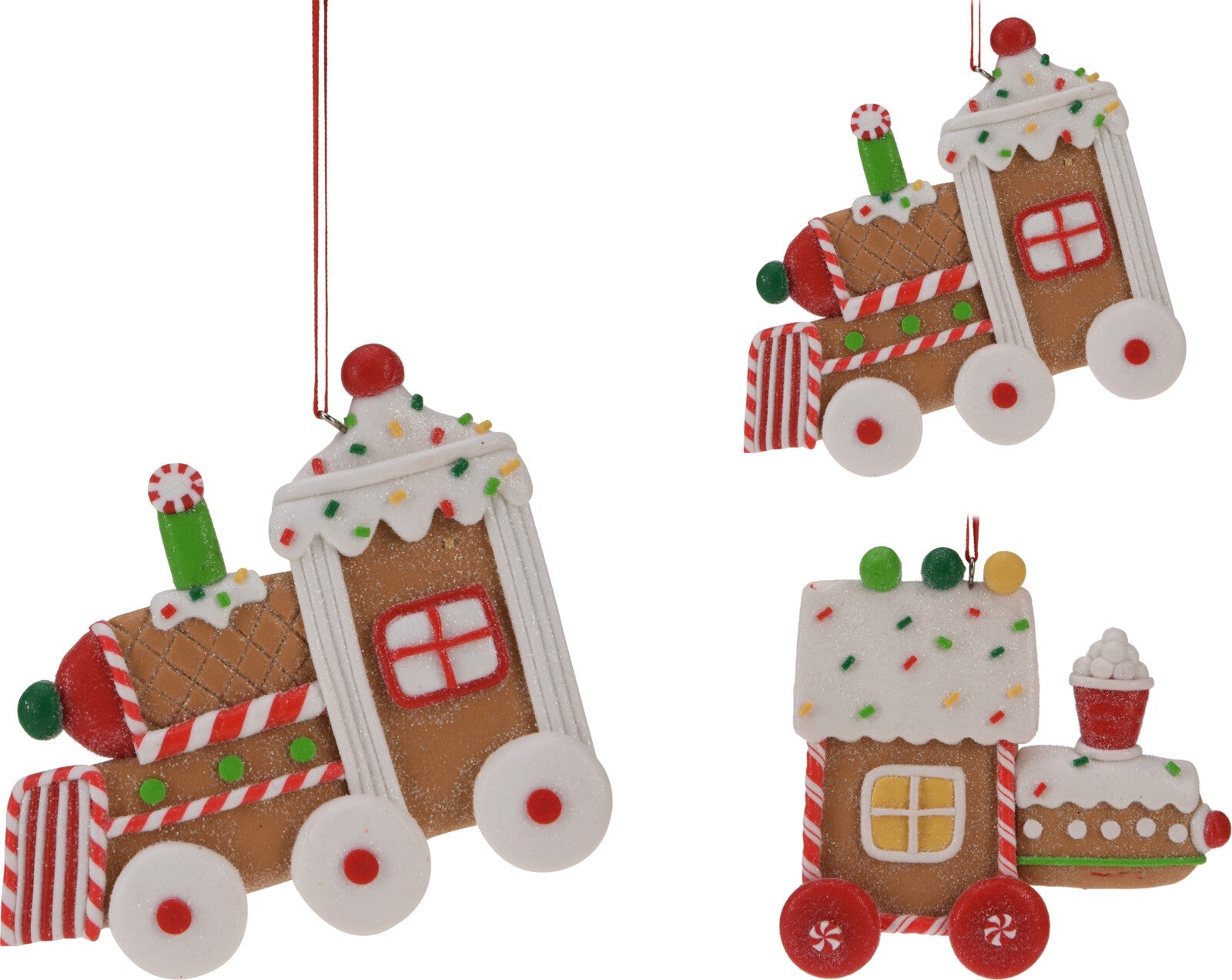 Pendentifs d'arbre de Noël en PVC Ginger Train 9 cm paquet de 12