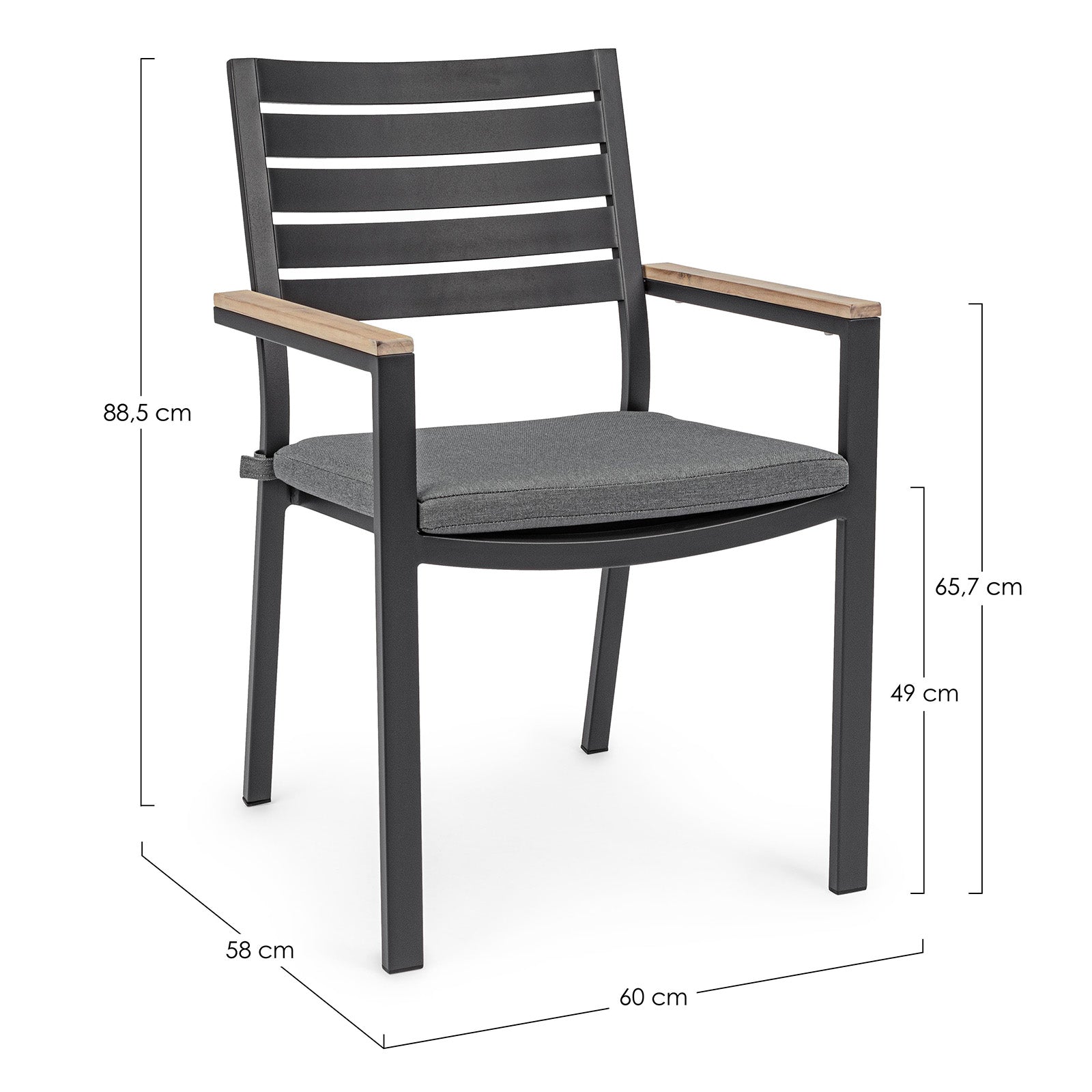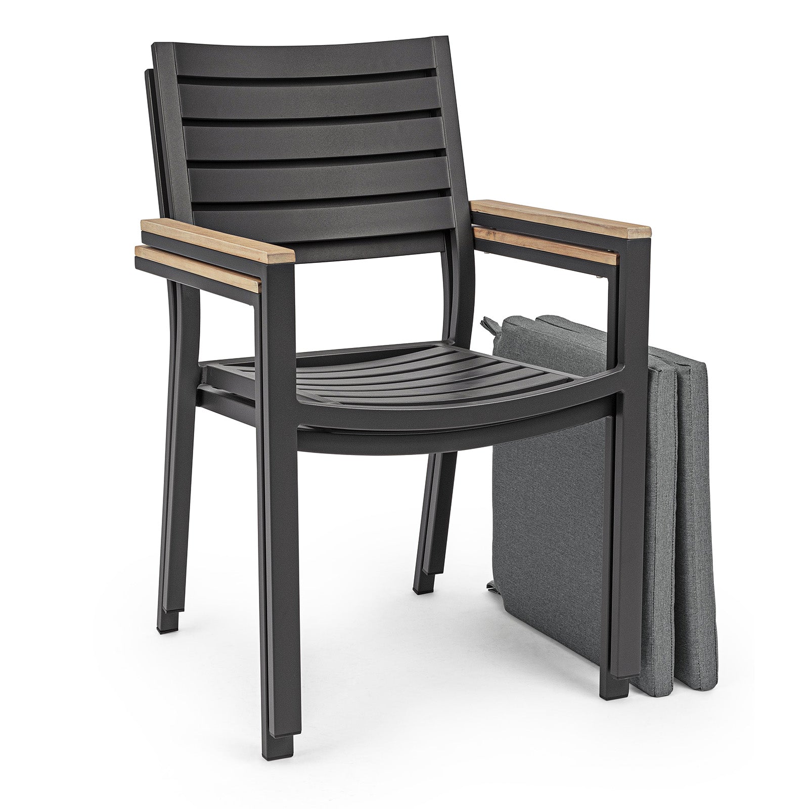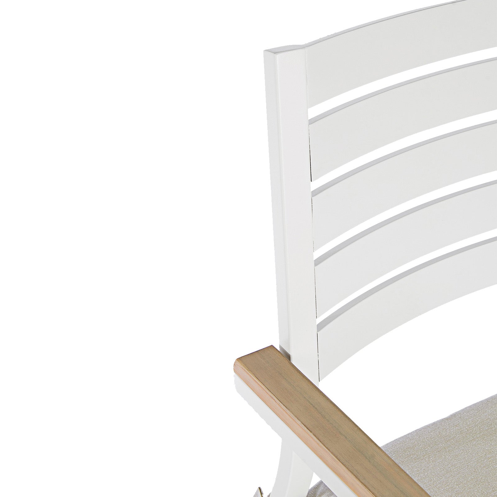 La chaise d'extérieur Belmar de Bizzotto a une structure en aluminium peint en poudre époxy, l'utilisation de ce type de peinture confère à notre chaise une excellente résistance à la corrosion et aux chocs.