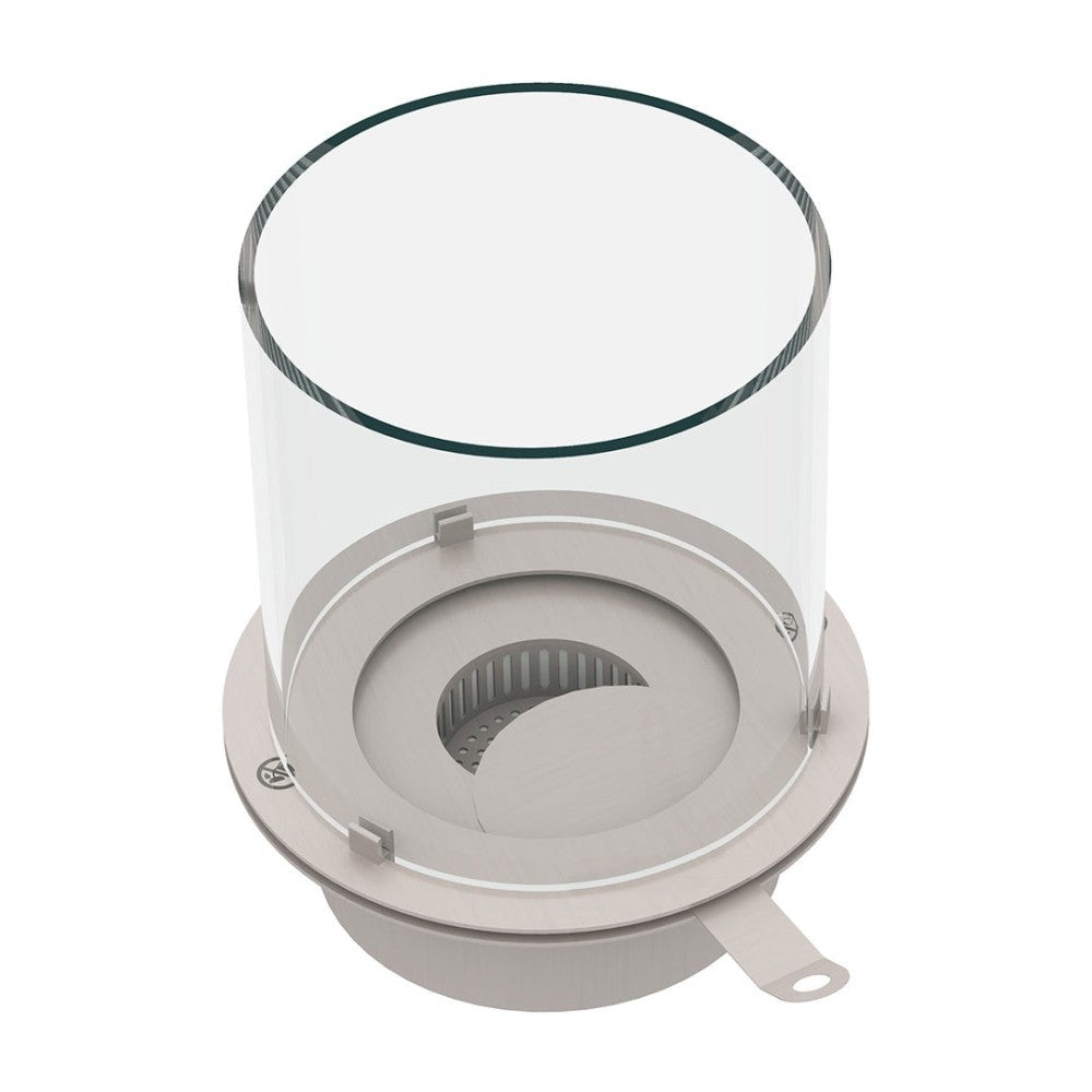 Brûleur au bioéthanol rond en acier avec réservoir en verre intégré