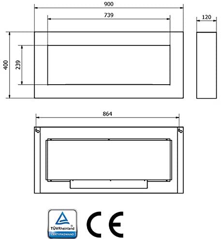 Cheminée murale au bioéthanol "Siena" en acier, 2,5 kW, déco moderne, 90 cm