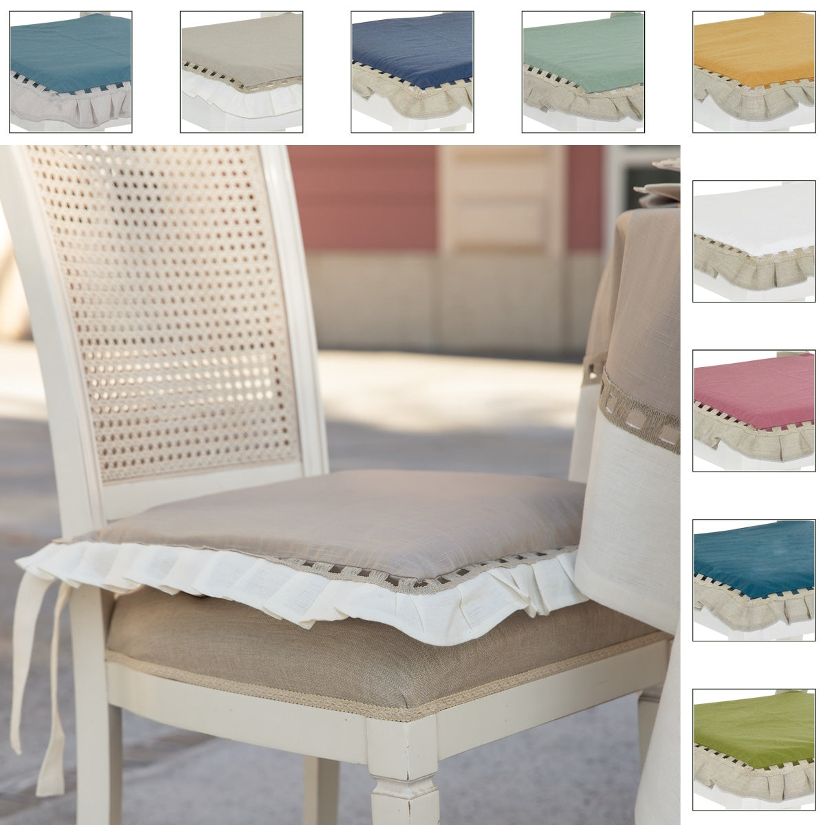 Prix régulier €43,90 Prix réduit €29,90Cette paire de housses de chaise en lin panama et coton avec application en PVC fait partie de la ligne de cuisine Ikebana de Preziosa Luxury Home.