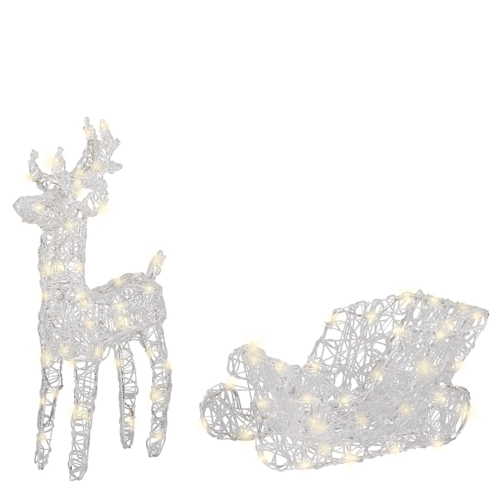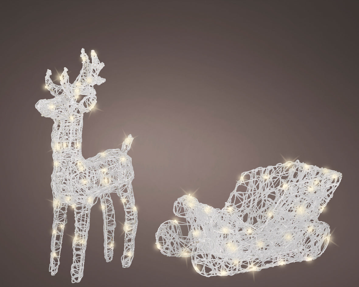 Décoration de Noël 3D "Renne avec traîneau" avec LED blanc chaud pour intérieur et extérieur