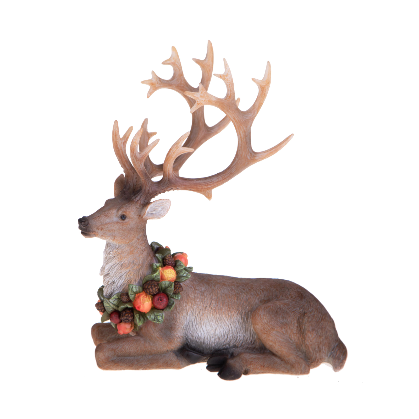 - Design élégant et naturel: La figurine représente un renne assis décoré d'une guirlande de fruits vibrante et détaillée, combinant la beauté classique de Noël avec une touche de fraîcheur naturelle.