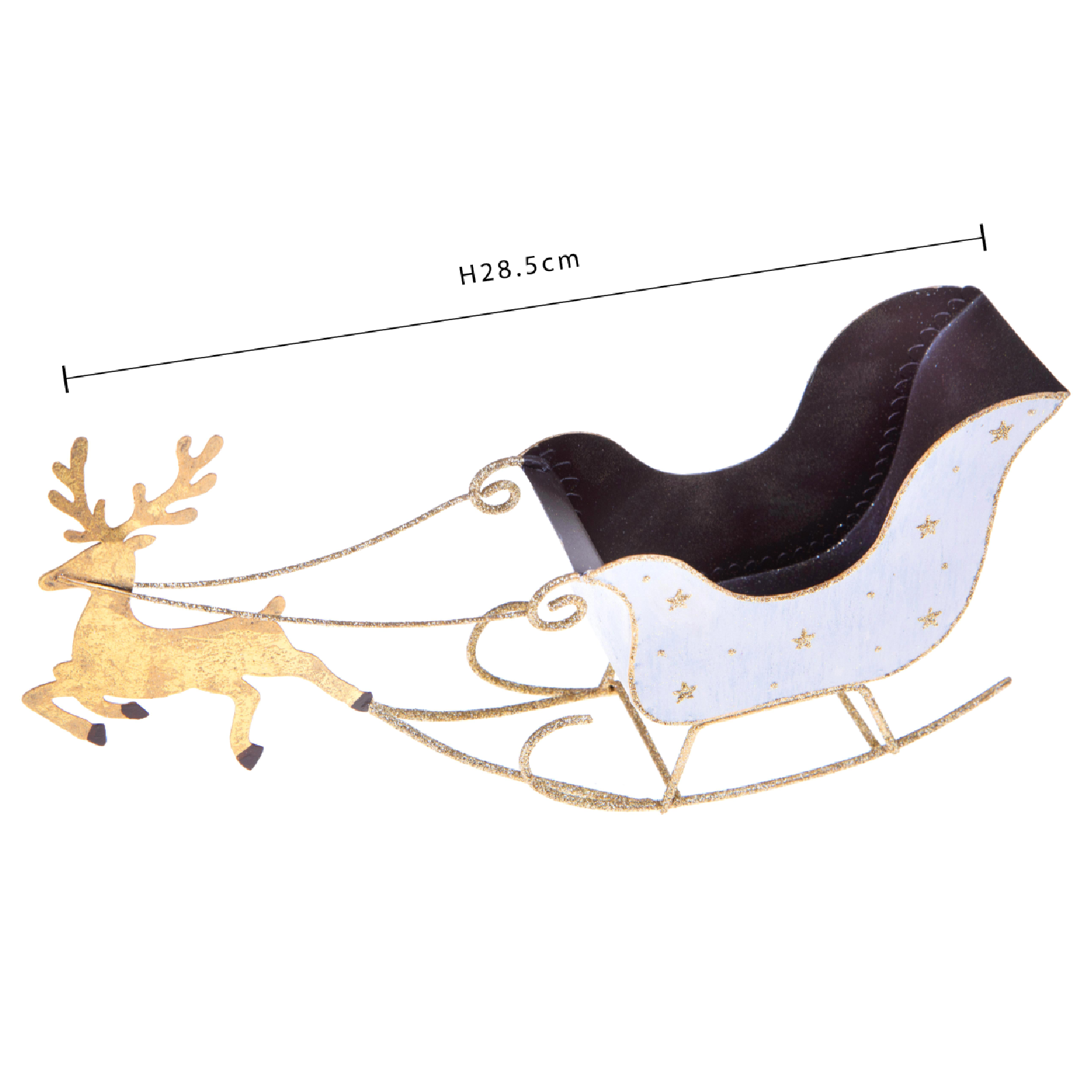 Ajoutez une touche de charme et de festivité à vos décorations de Noël avec cette adorable figurine de traîneau de rennes, fabriquée en métal.