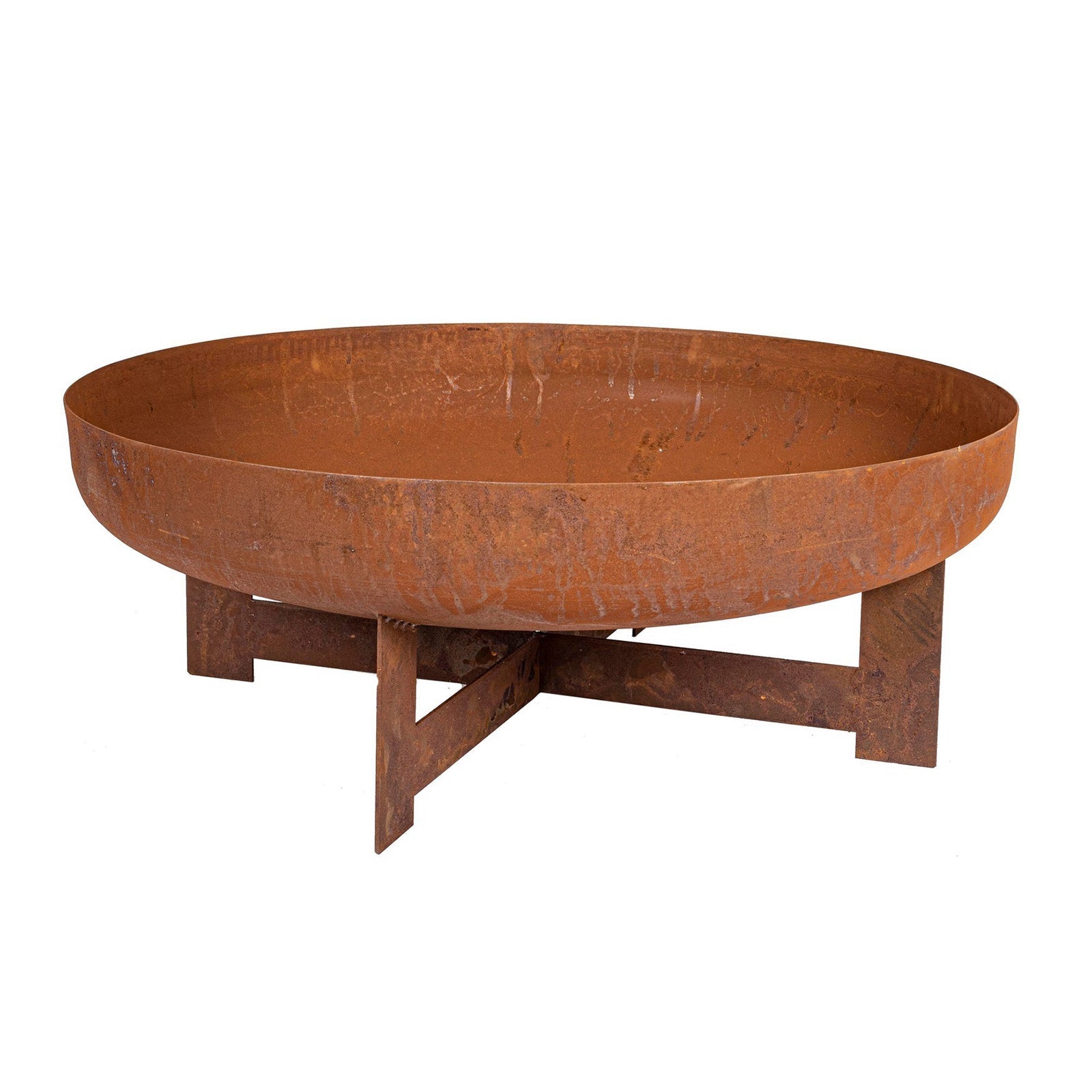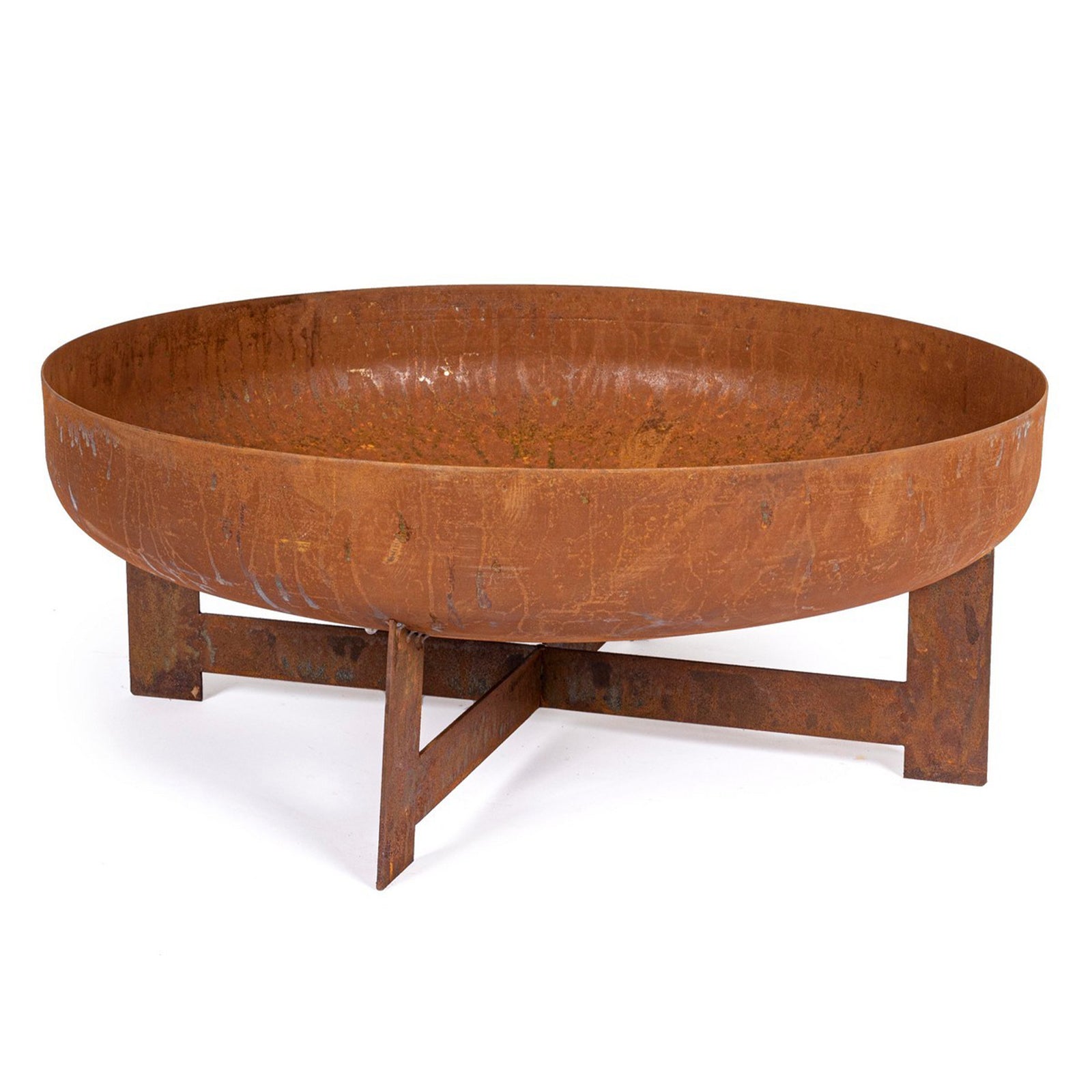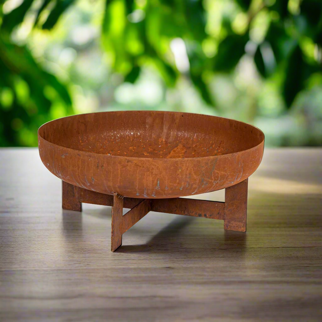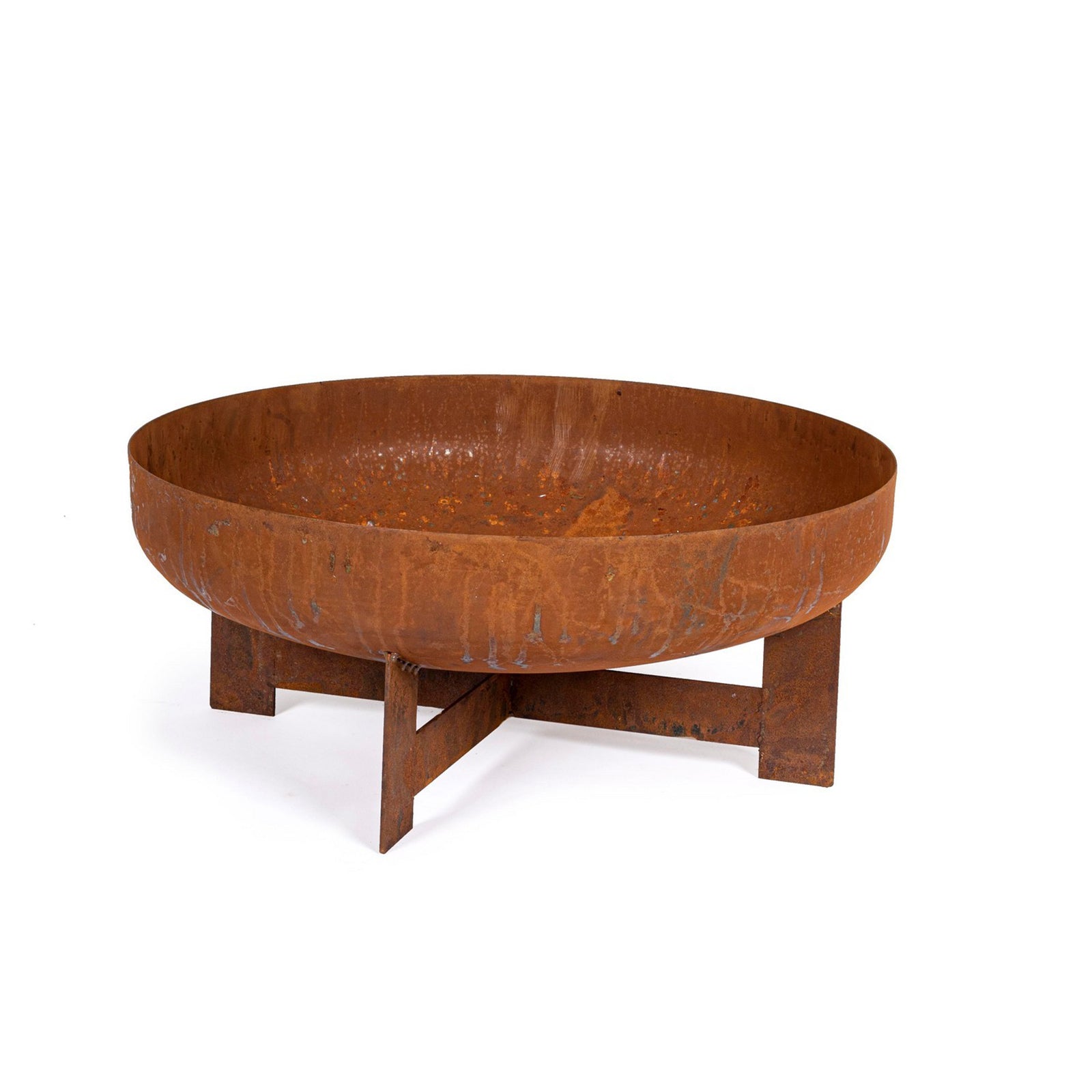Foyer bas "Efesto", couleur rouille authentique, structure en acier résistant pour usage extérieur
