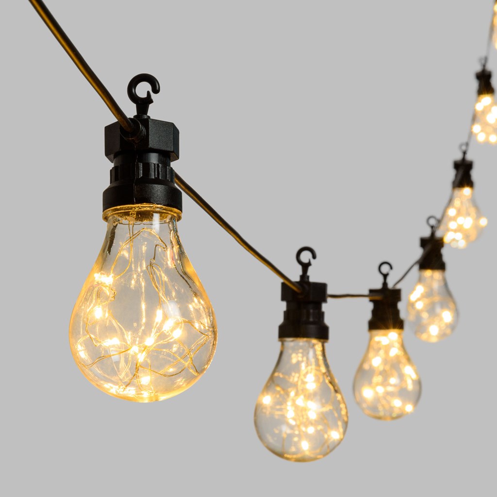 Prix régulier €49,90 Prix réduit €37,90La caténaire mesure 5 mètres de long et comporte 10 ampoules goutte en plastique transparent.