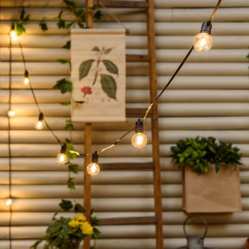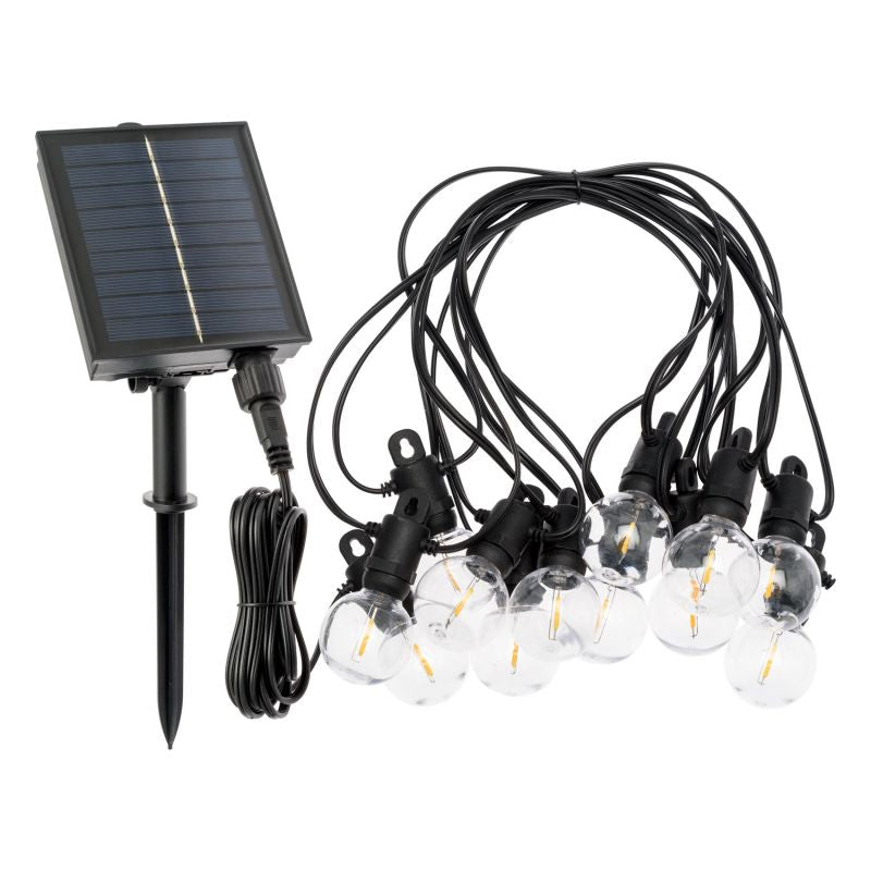 Prix régulier €43,90 Prix réduit €37,90Cette guirlande lumineuse solaire de 5 m se compose de 12 x ampoules globe transparentes , en plastique antichoc, de 40 mm de diamètre, disposé sur un câble noir.