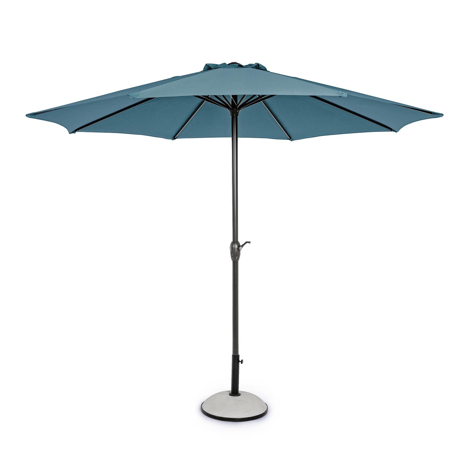 Parasol rond avec mât central en aluminium thermolaqué anthracite de 36 mm, parfait pour tous les styles d'extérieur.