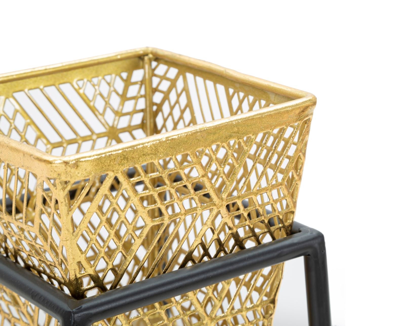 La structure des porte-vases est en métal, conférant solidité et résistance. Le design est soigneusement étudié pour offrir un support à la fois stable et esthétique.