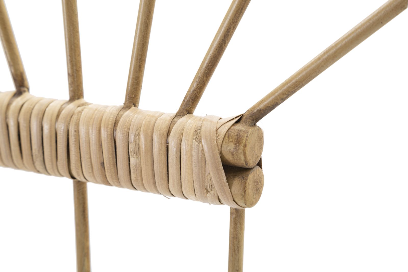 Une particularité du porte-manteau "Panama" sont les finitions en rotin, qui enveloppent délicatement certains éléments de la structure métallique et les crochets, en ajoutant une chaleur visuelle et une texture intéressante.