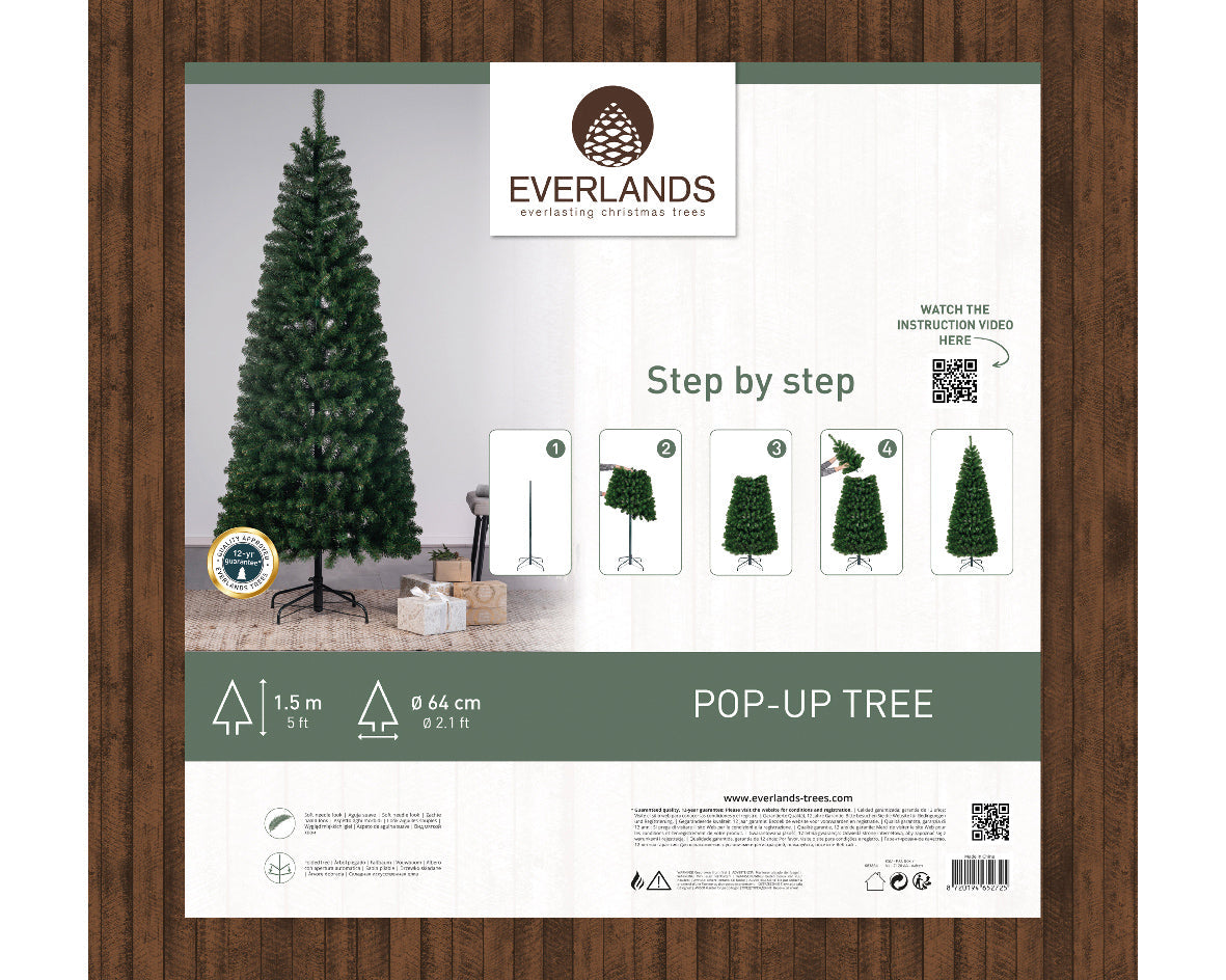 Le design « pop up » vous permet d'assembler et de démonter l'arbre extrêmement facilement et rapidement. Dépliez-le simplement et fixez-le en place pour obtenir un arbre parfait en quelques minutes. Après les vacances, il peut être facilement plié et rangé sans prendre beaucoup de place.