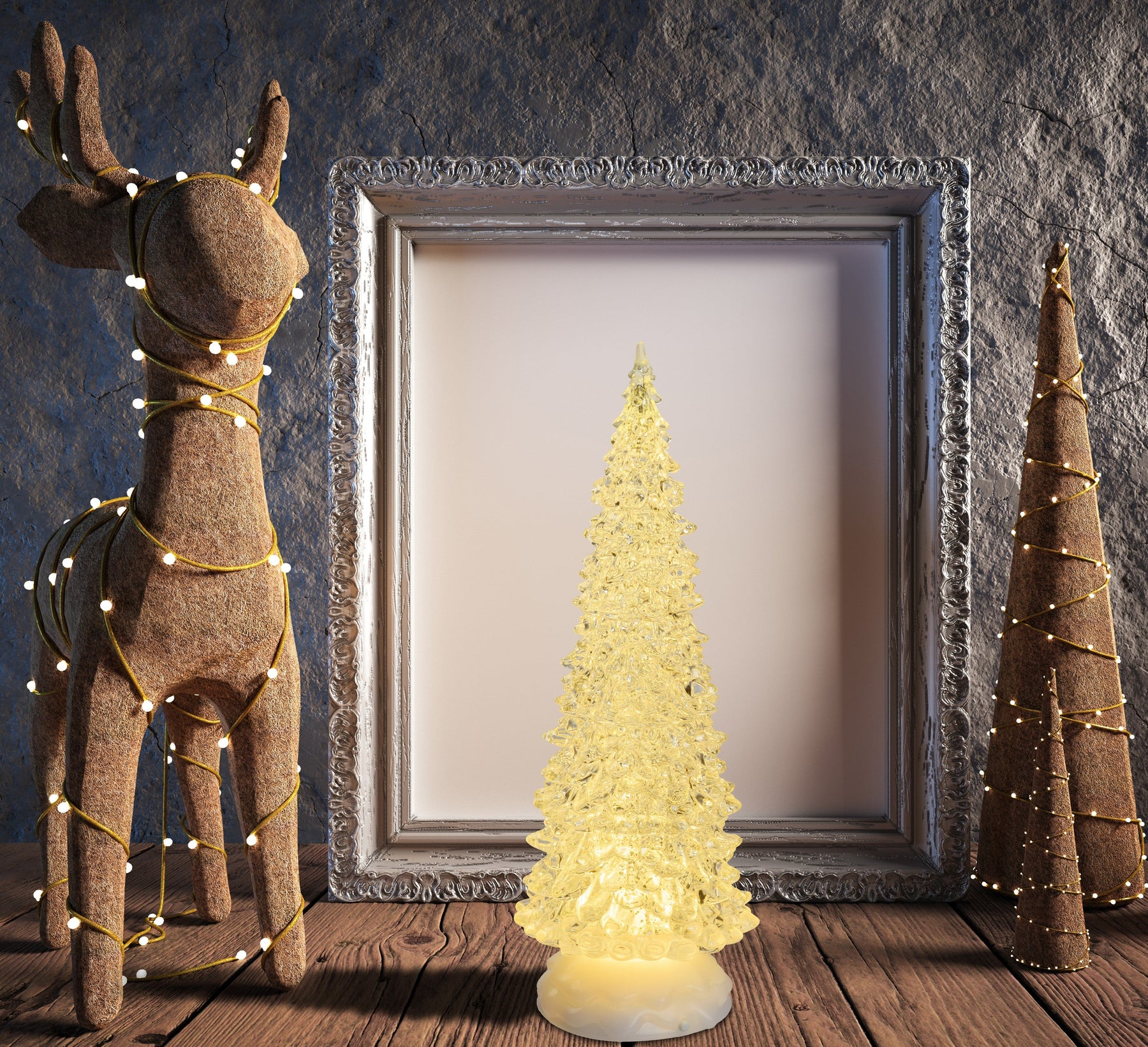 Cet arbre de Noël lumineux à LED scintillantes est une décoration polyvalente qui peut être utilisée sur les tables, les étagères, les cheminées ou même comme pièce maîtresse.