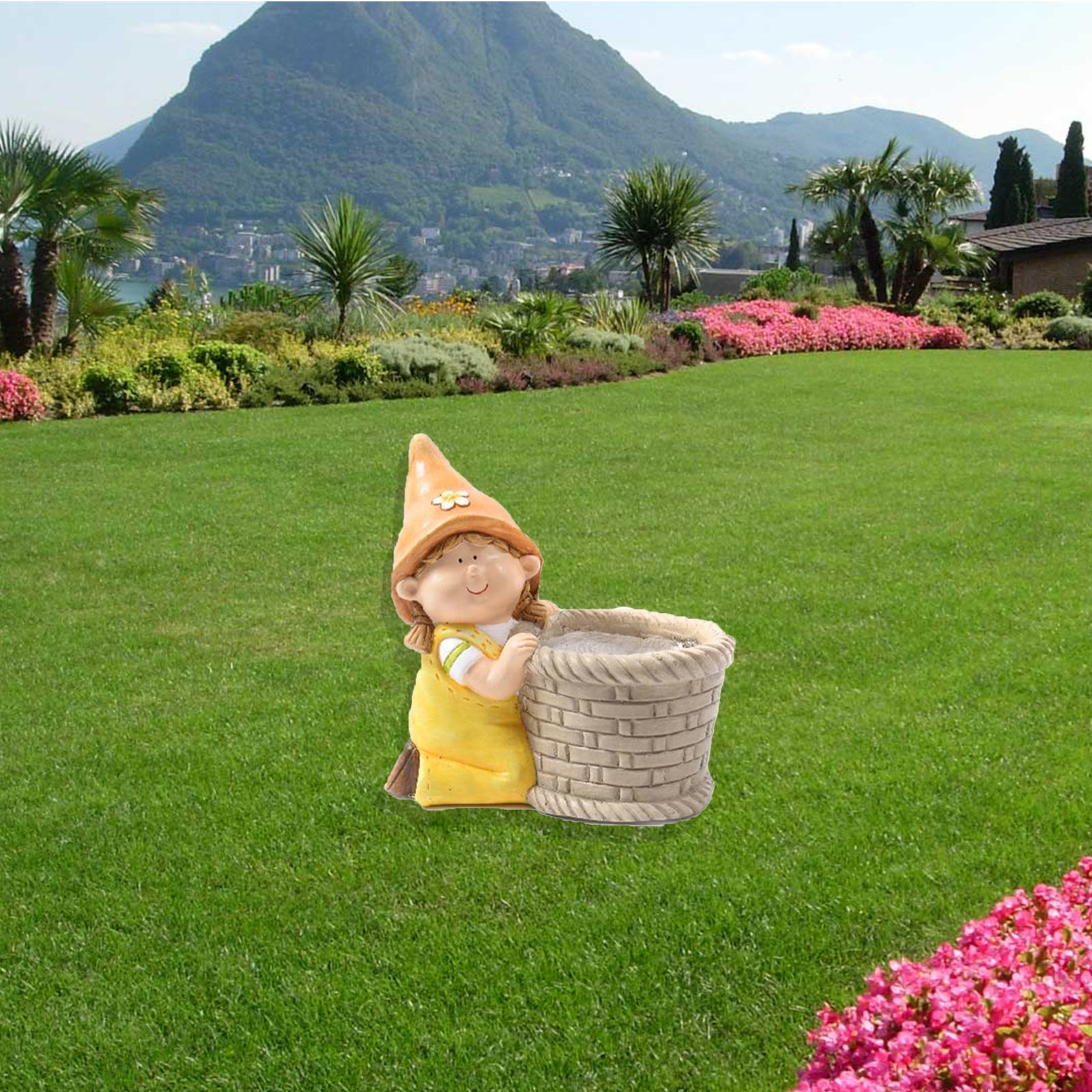 Nains de jardin extérieur en polyrésine Statue Livia avec cache-pot h 32 cm
