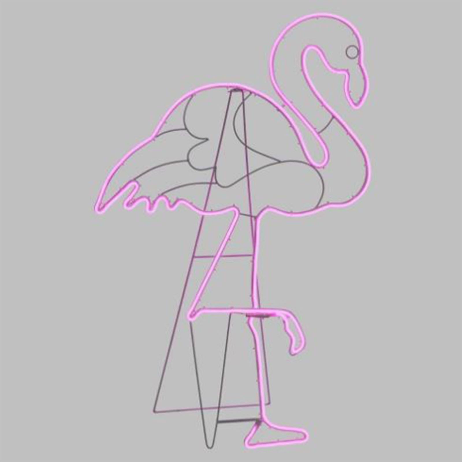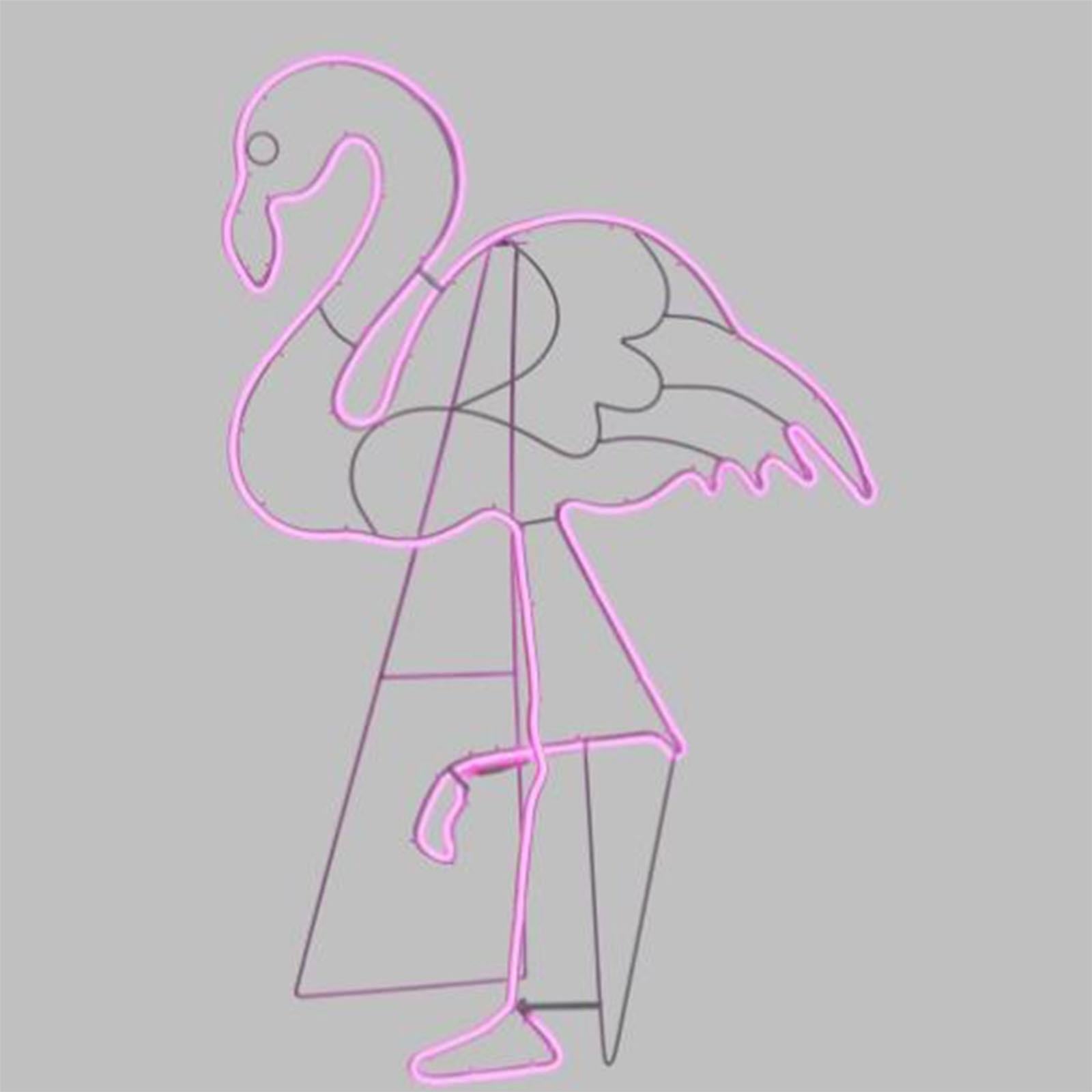 FIGURA LUMINOSA FENICOTTERO A LED EFFETTO NEON H 115 CM BIFACCIALE DA GIARDINO