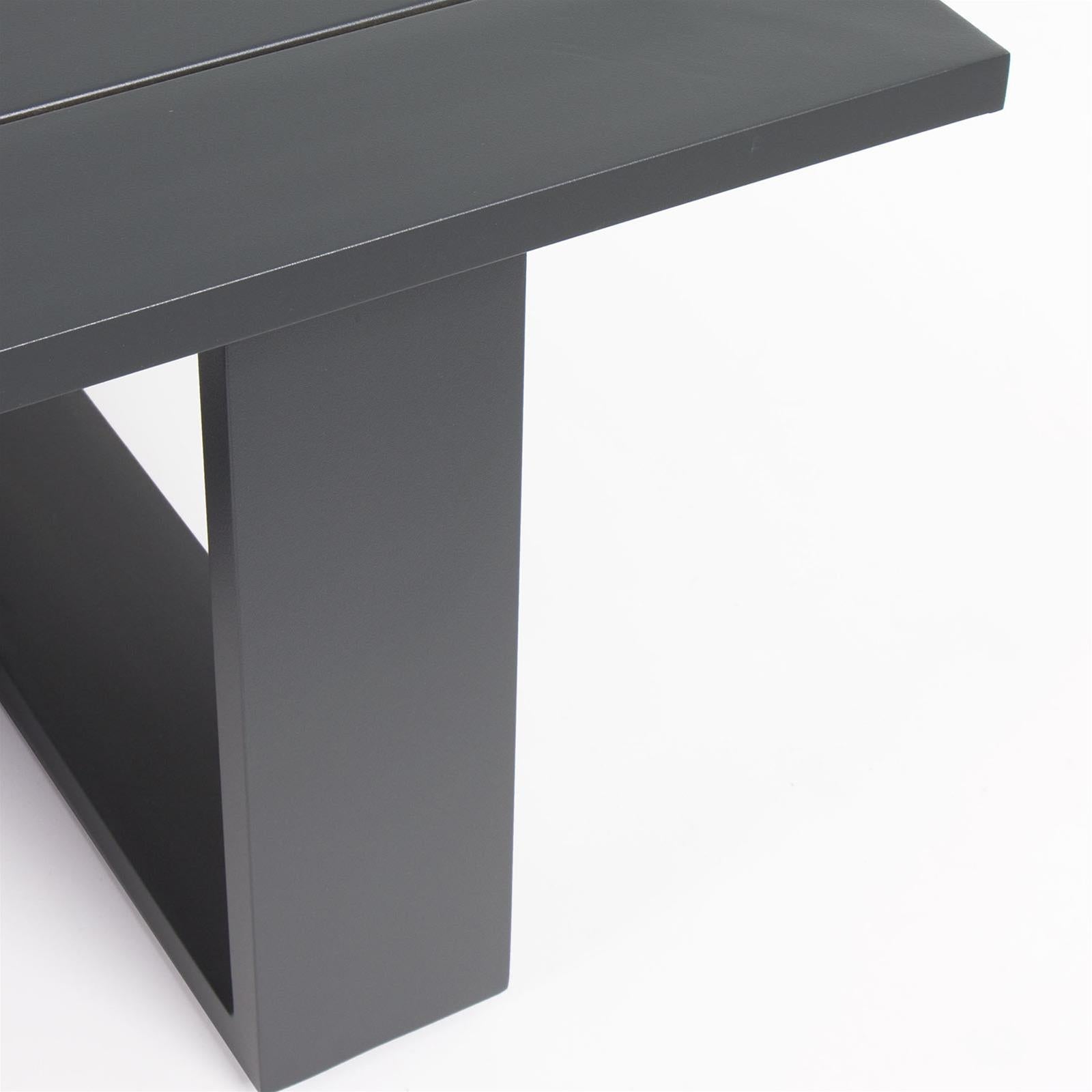 Structure rectangulaire de couleur anthracite, dossier et assise à lattes.