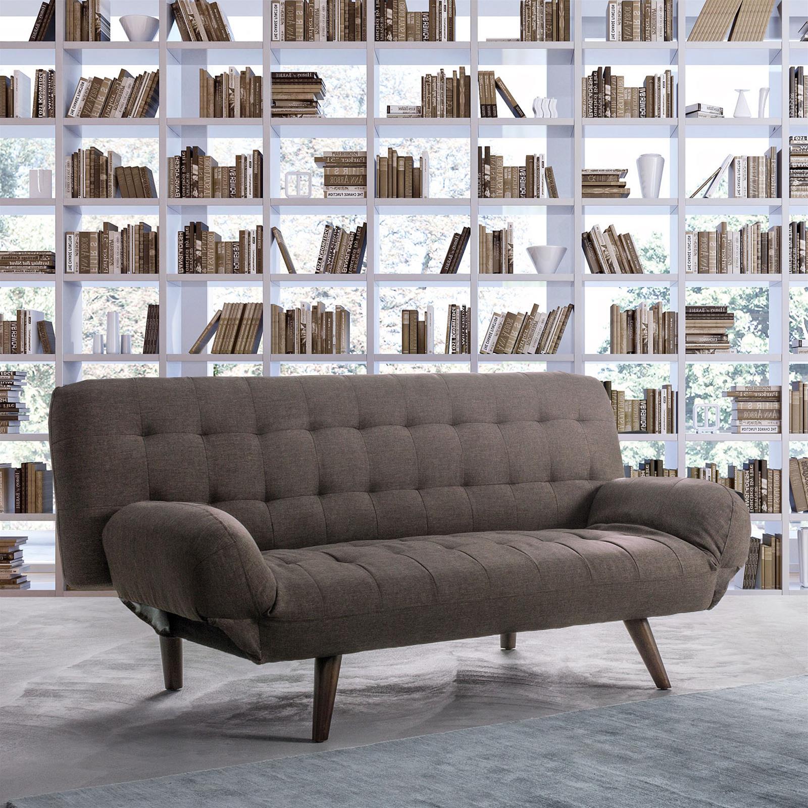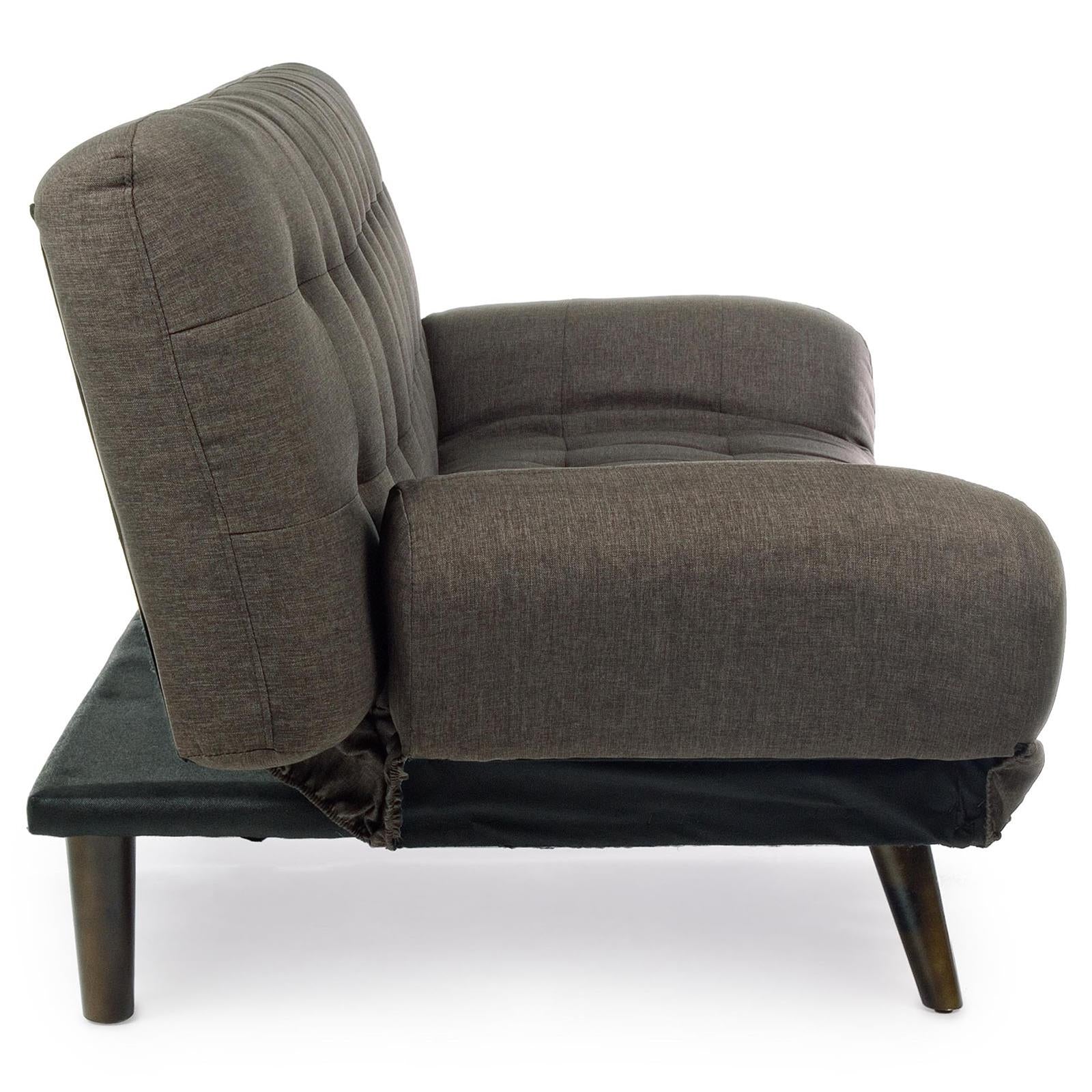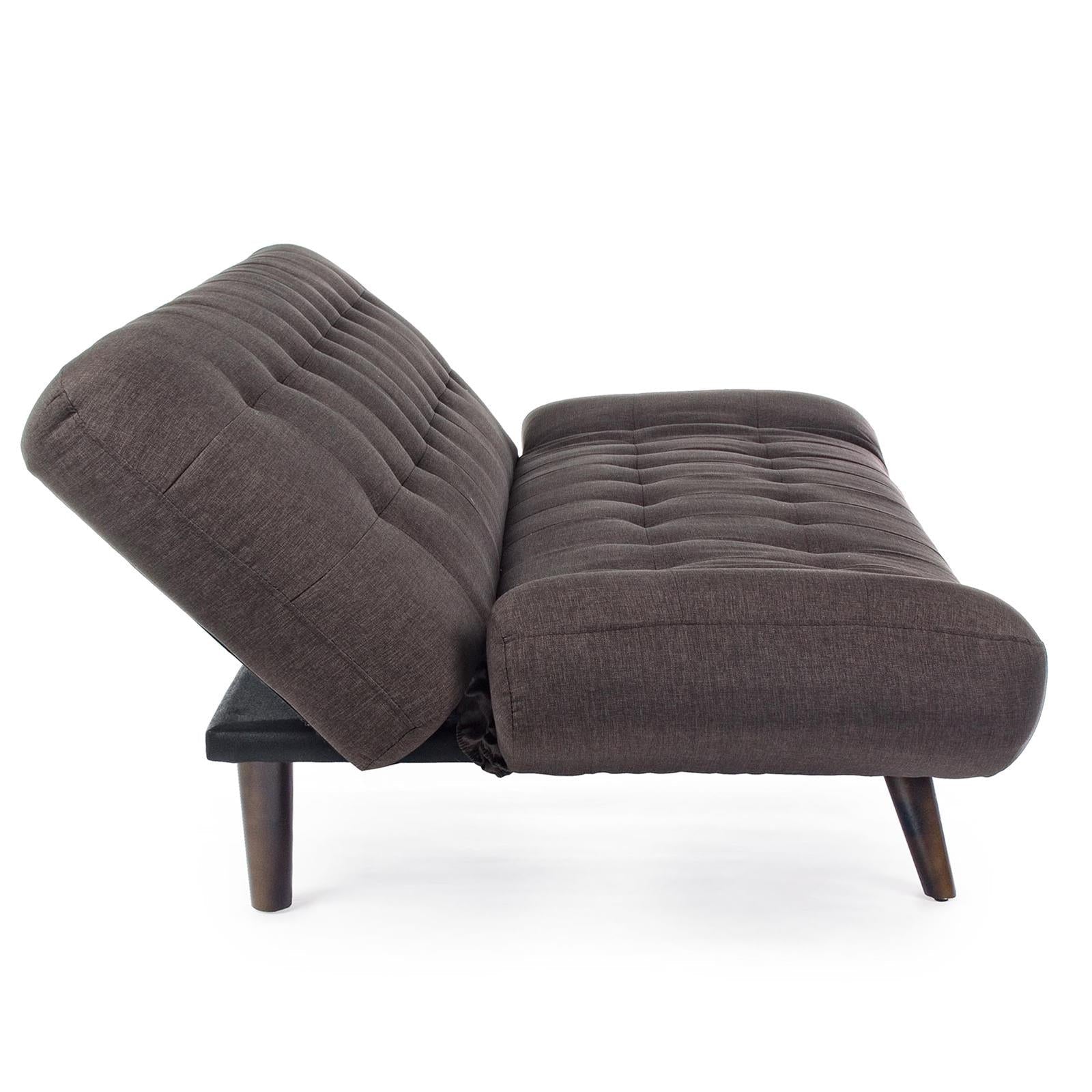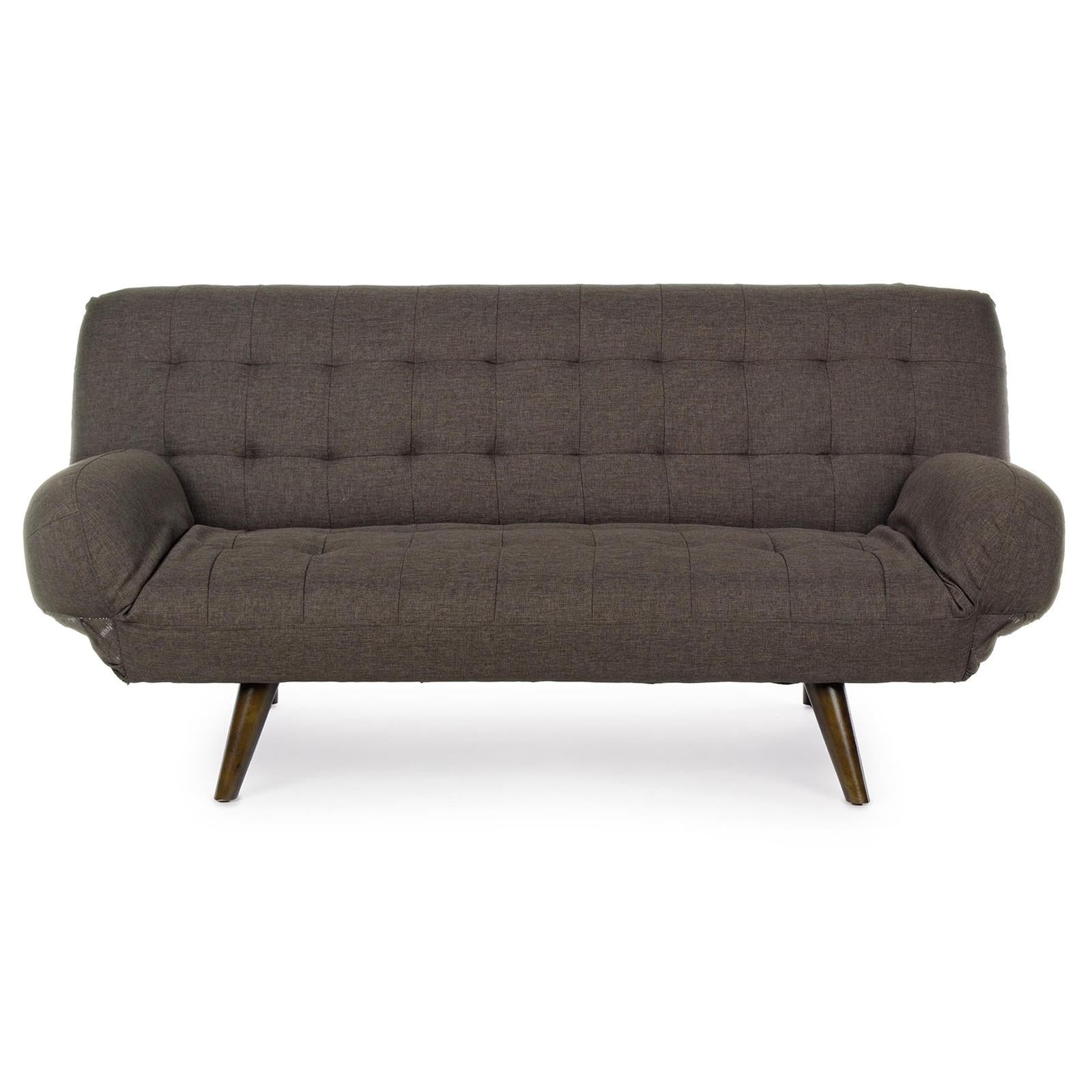 Prix régulier €431,90 Prix réduit €399,90Le canapé-lit 3 places Dive, en tissu marron avec système clic-clac, confortable et linéaire, se transforme d'un simple mouvement en un lit confortable et accueillant.