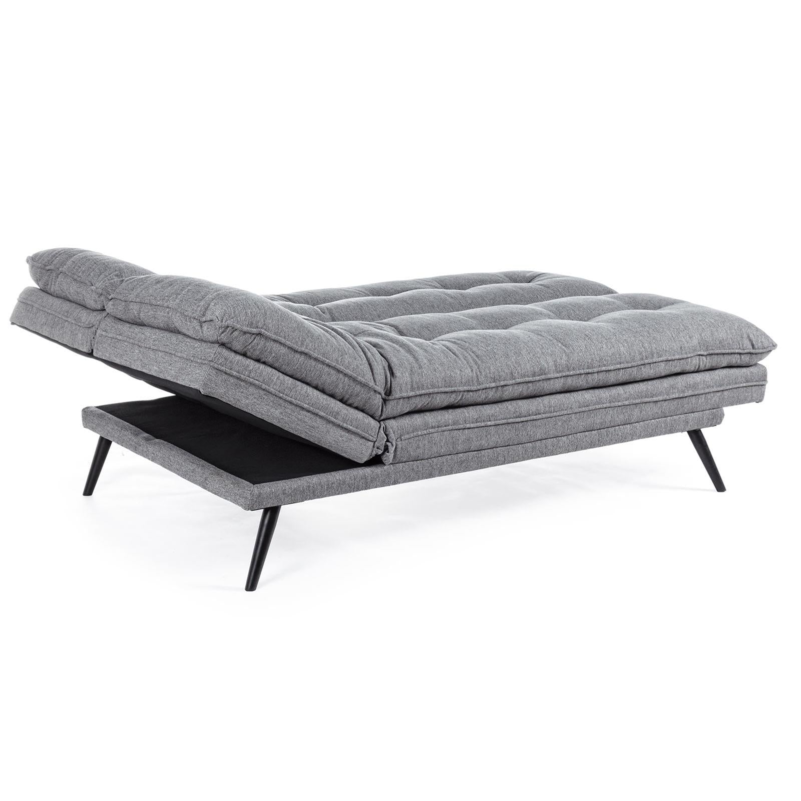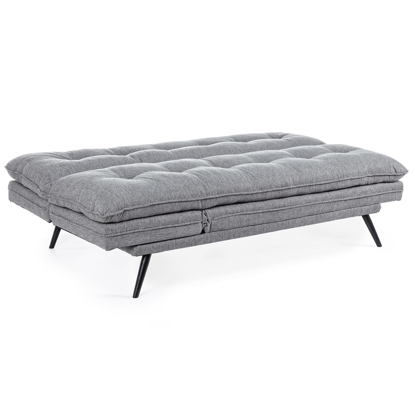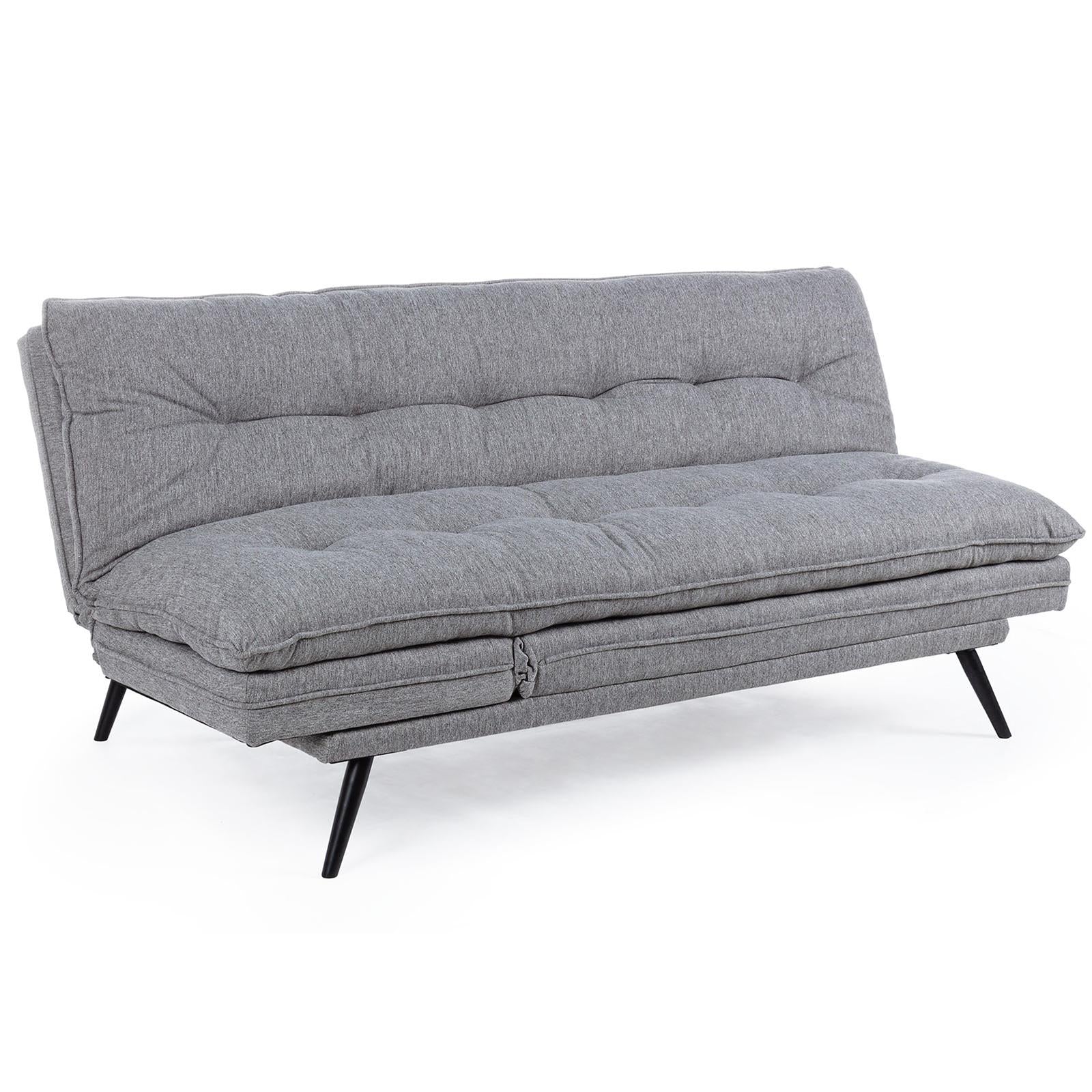 Prix régulier €499,90 Prix réduit €449,90Le canapé-lit 3 places Dive, en tissu gris avec système clic-clac, confortable et linéaire, se transforme d'un simple mouvement en un lit confortable et accueillant.