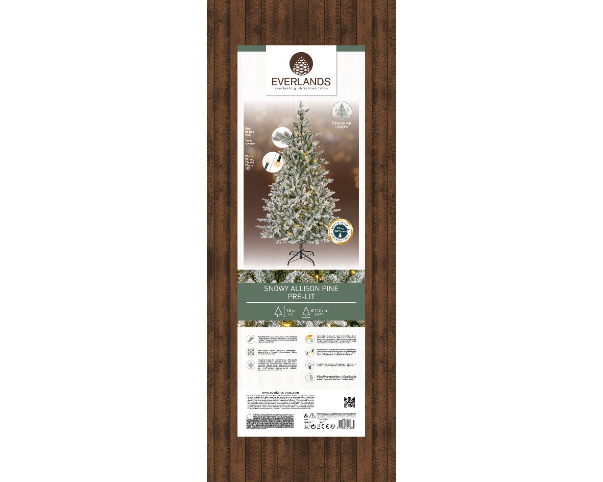 Grâce à sa construction robuste et à ses matériaux de la plus haute qualité, l'arbre « Snowy Allison » est conçu pour durer et conserver sa beauté pendant de nombreuses saisons de vacances.