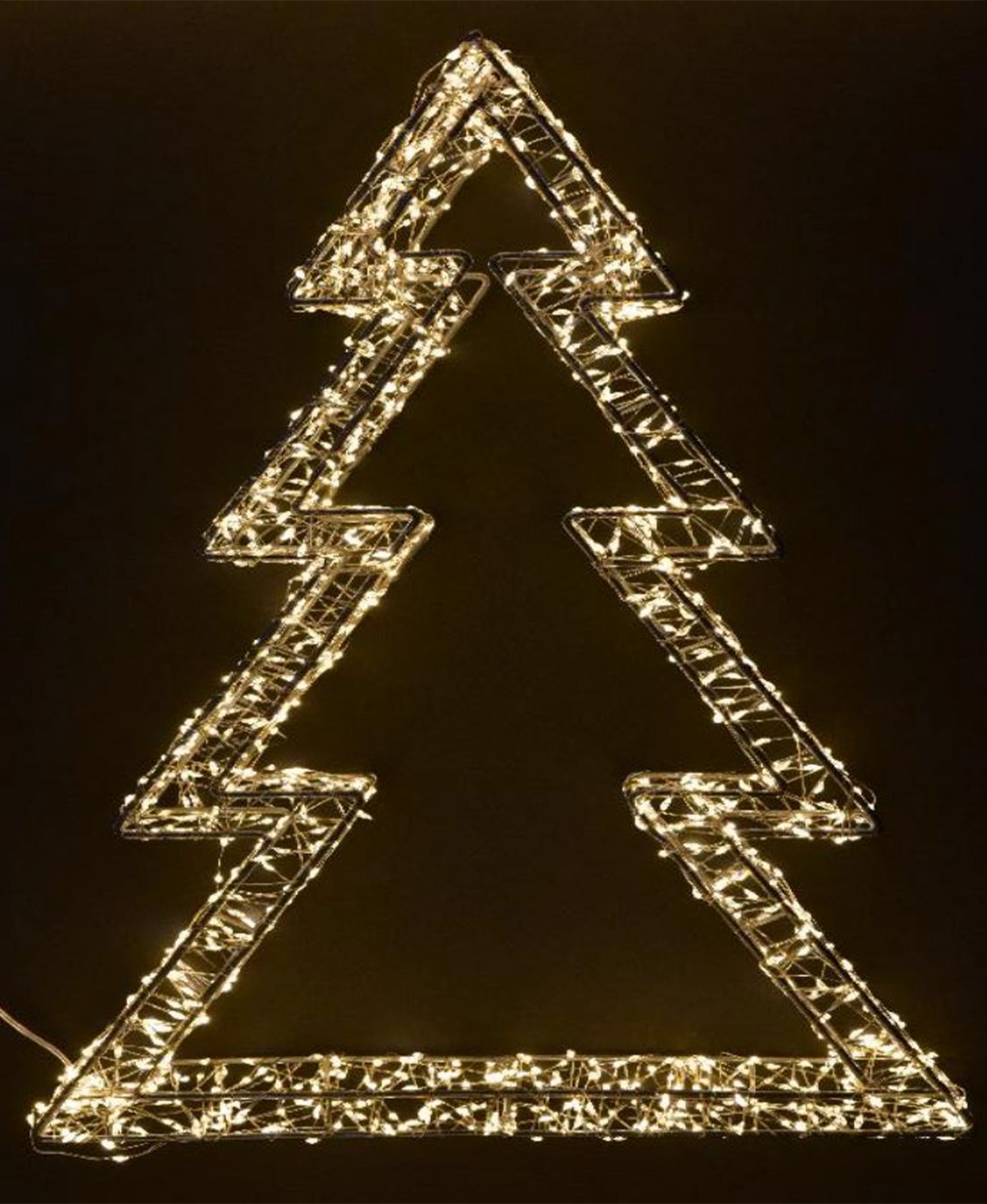 Les lumières sont uniformément réparties, assurant un éclairage homogène qui met en valeur la structure élégante de l'arbre.