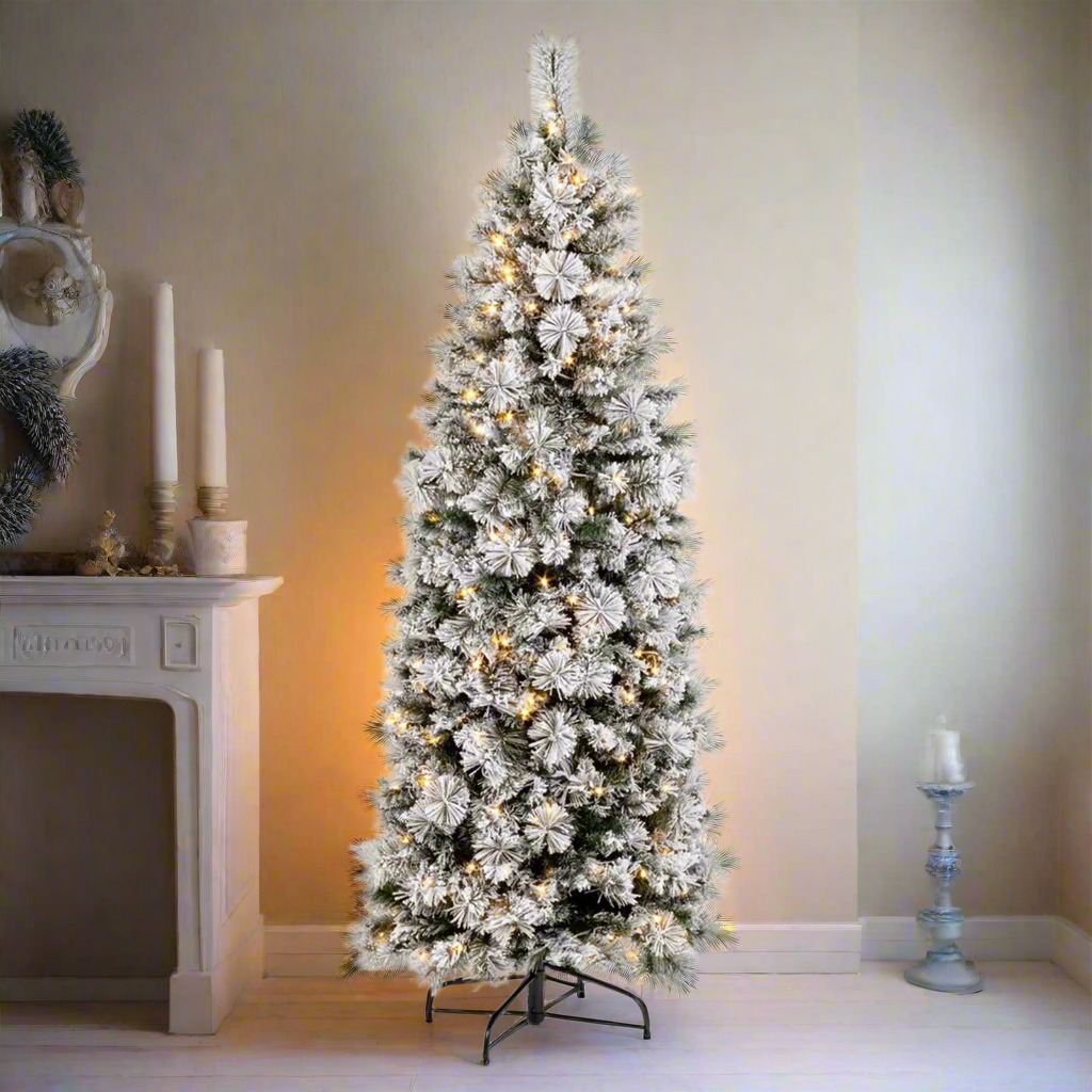 Fabriqué entièrement à partir de PVC de la plus haute qualité, cet arbre présente des branches fines et élancées, décorées d'une légère pincée de neige artificielle pour créer un effet hivernal réaliste.