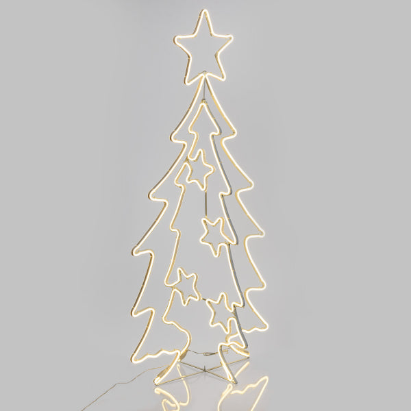 Prix régulier €169,90 Prix réduit €139,90Le sapin de Noël double face 2D/3D avec étoiles et 960 LED blanc chaud a une hauteur de 145 cm.