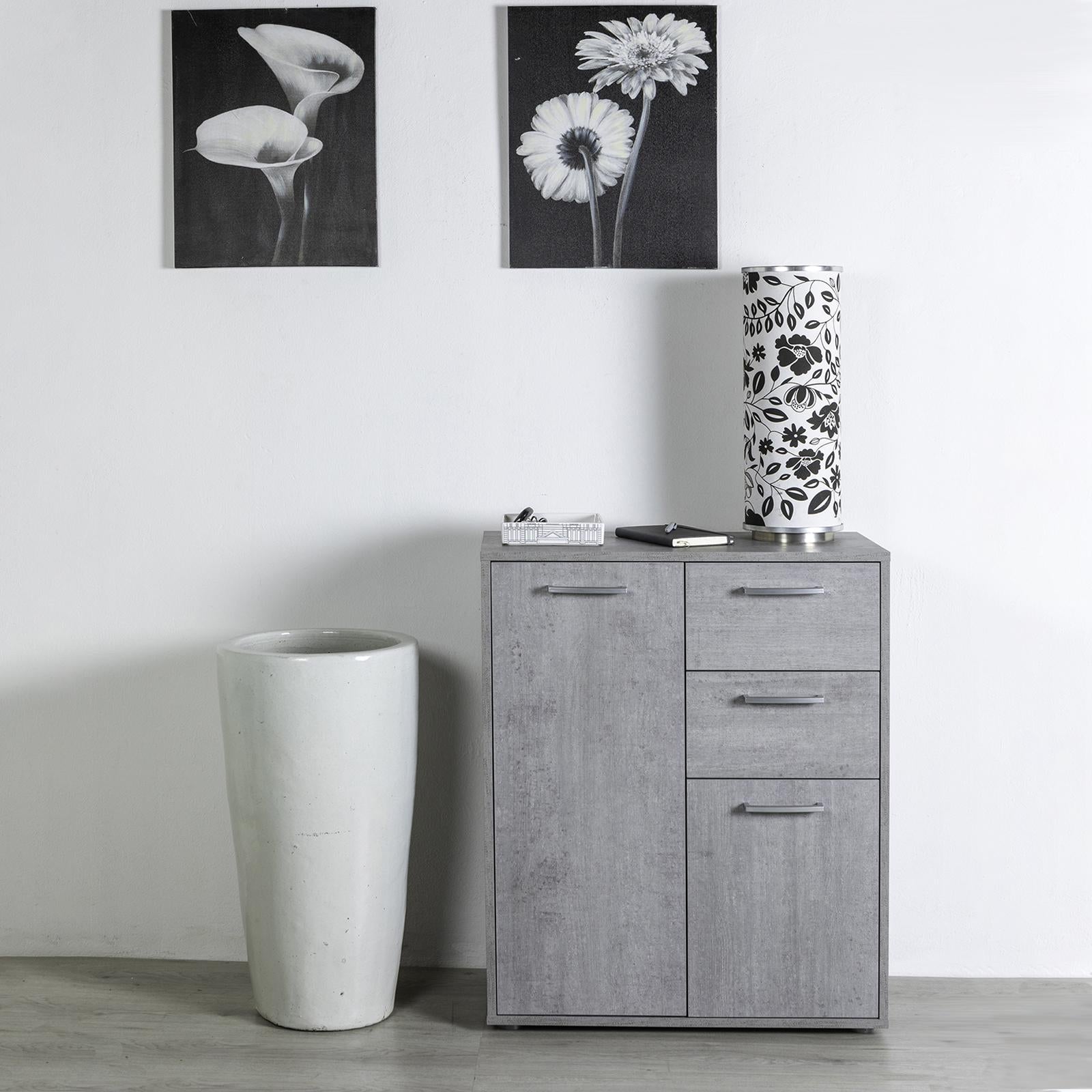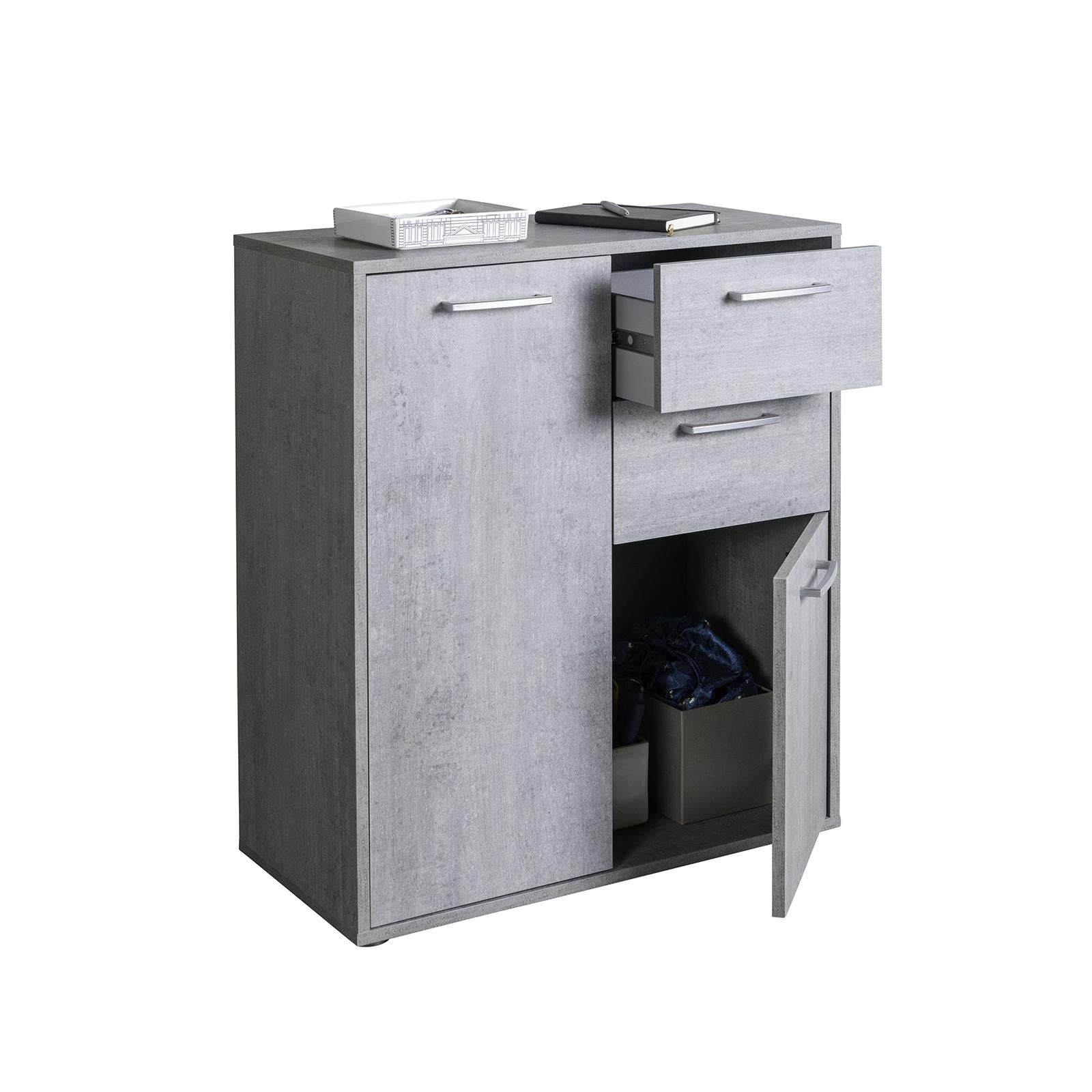 Armoire basse avec 2 portes et 2 tiroirs, étagère à chaussures en bois h 88 cm