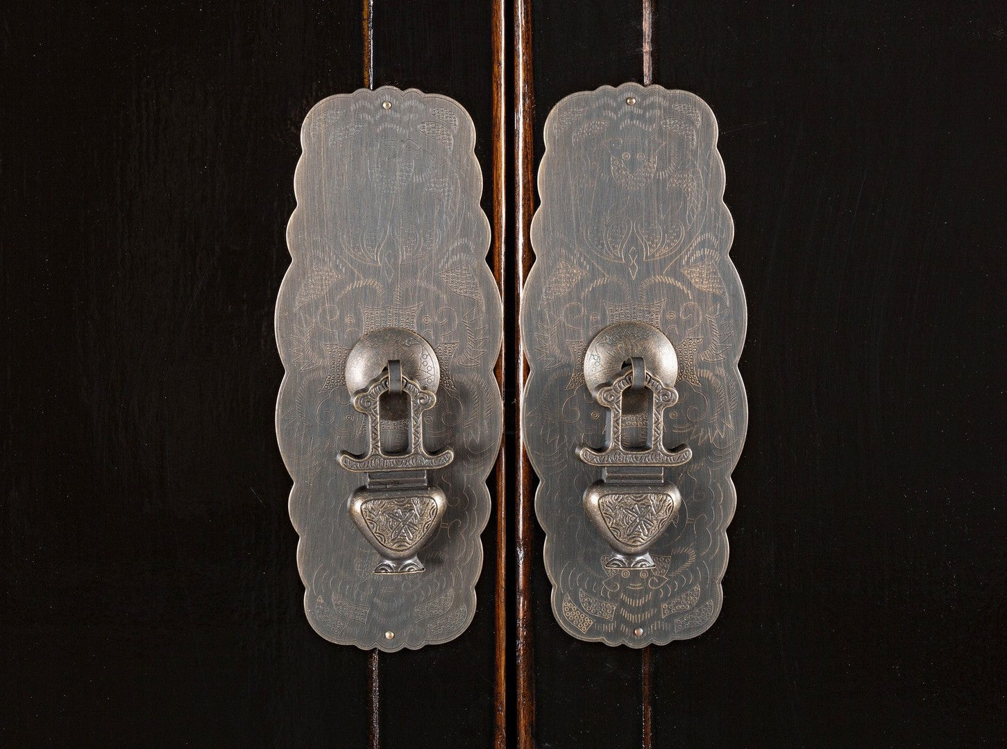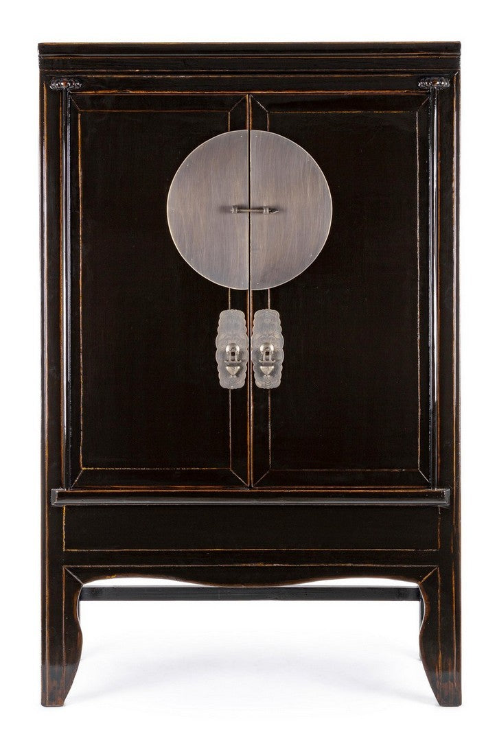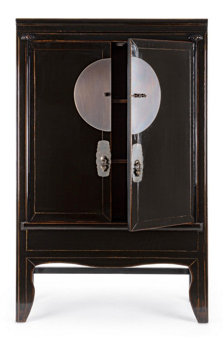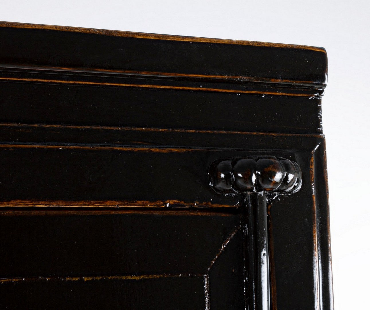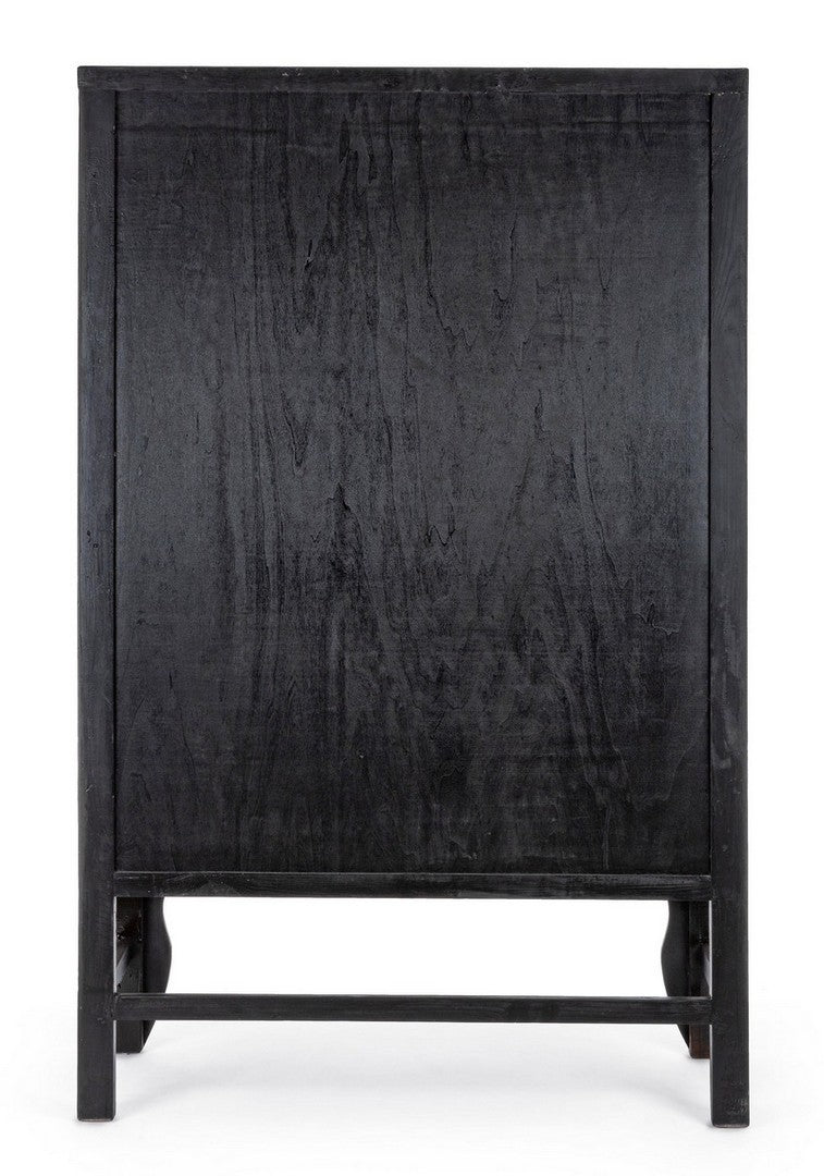 La couleur noire donne à l'armoire un look moderne et sophistiqué, tandis que la structure en bois d'orme ajoute une touche de chaleur et de naturel. La combinaison de couleurs et de matériaux rend cette armoire adaptée à diverses esthétiques de décoration.