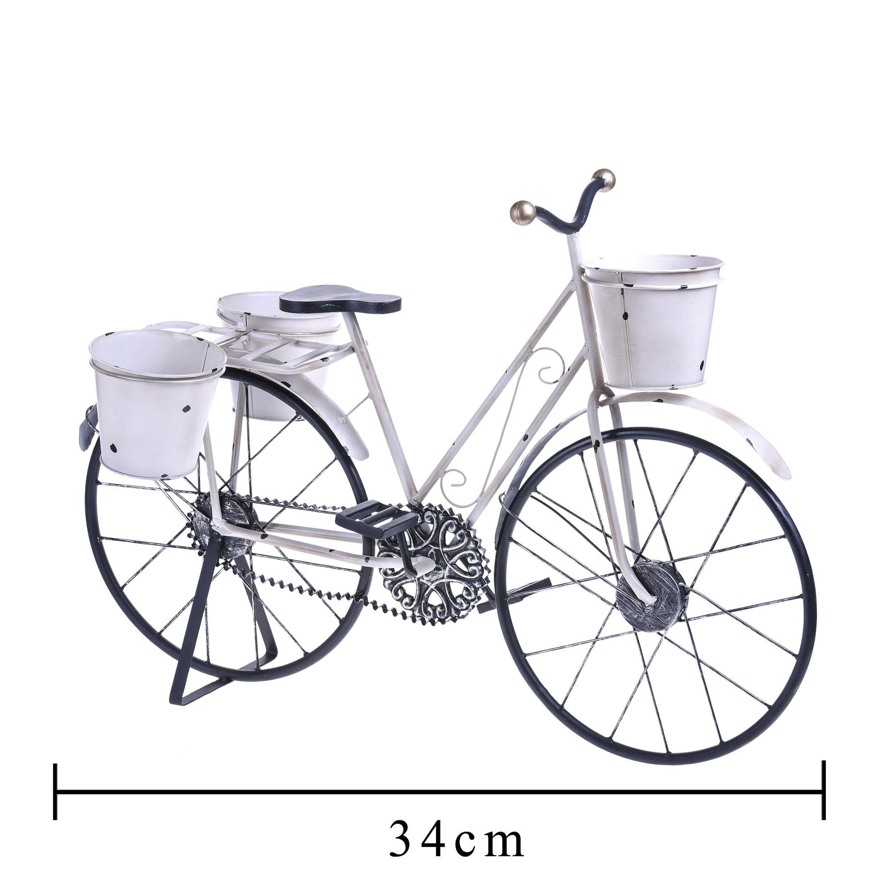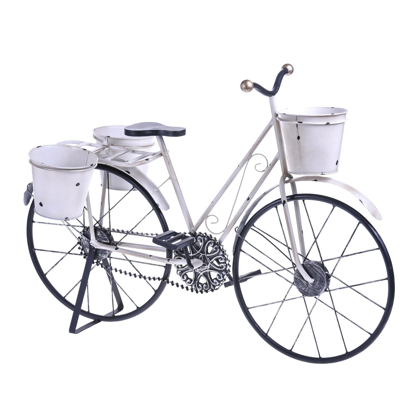 Vélo avec pots pour fleurs et plantes décoration de jardin et extérieur 80 cm blanc antique