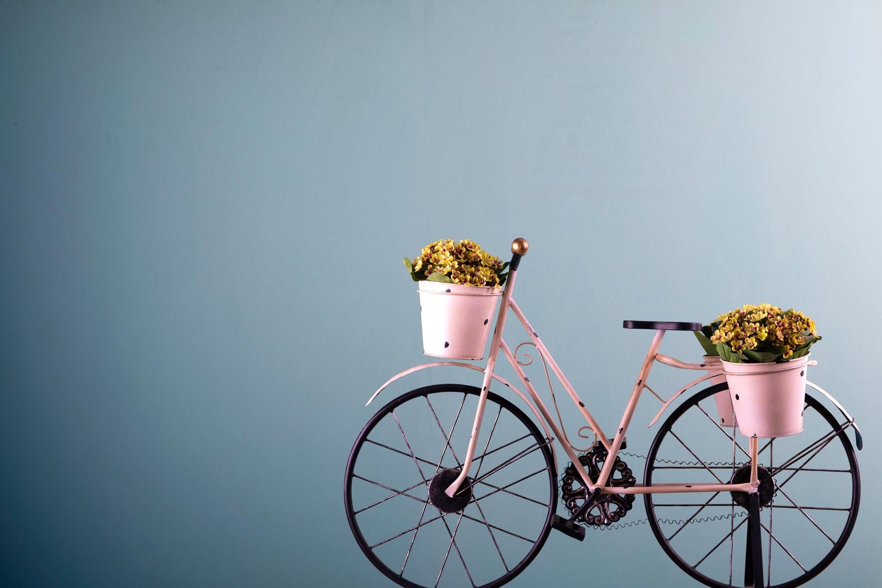 Ce vélo est équipé d'un vase dans lequel insérer des fleurs et des plantes, ce qui en fait une décoration précieuse et moderne pour l'extérieur et le jardin.
