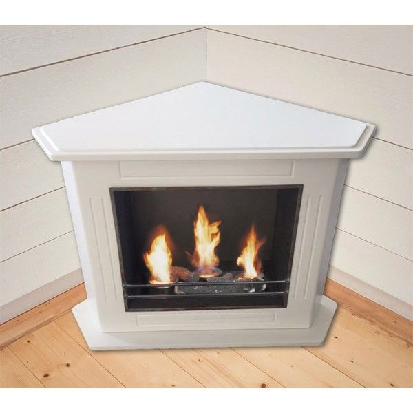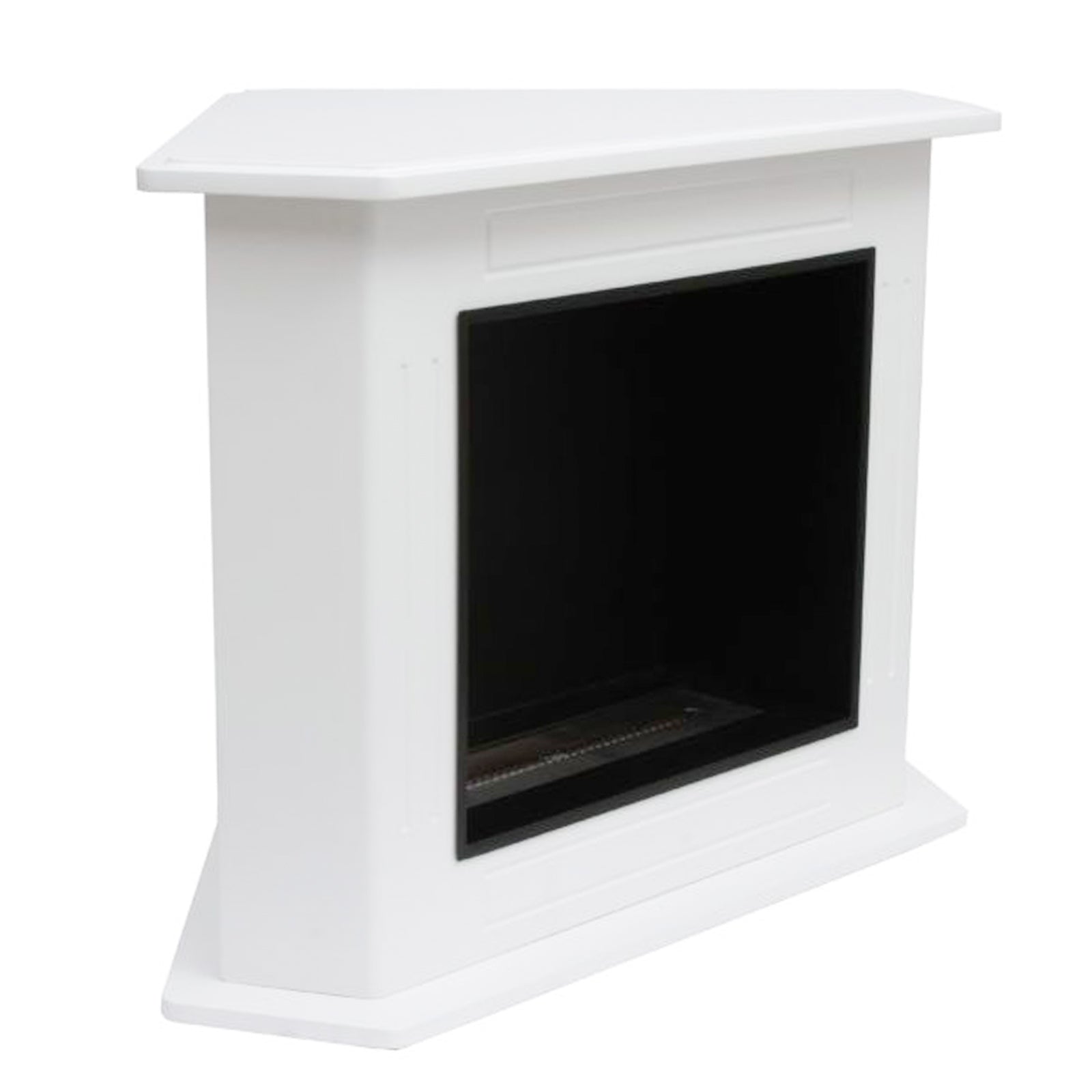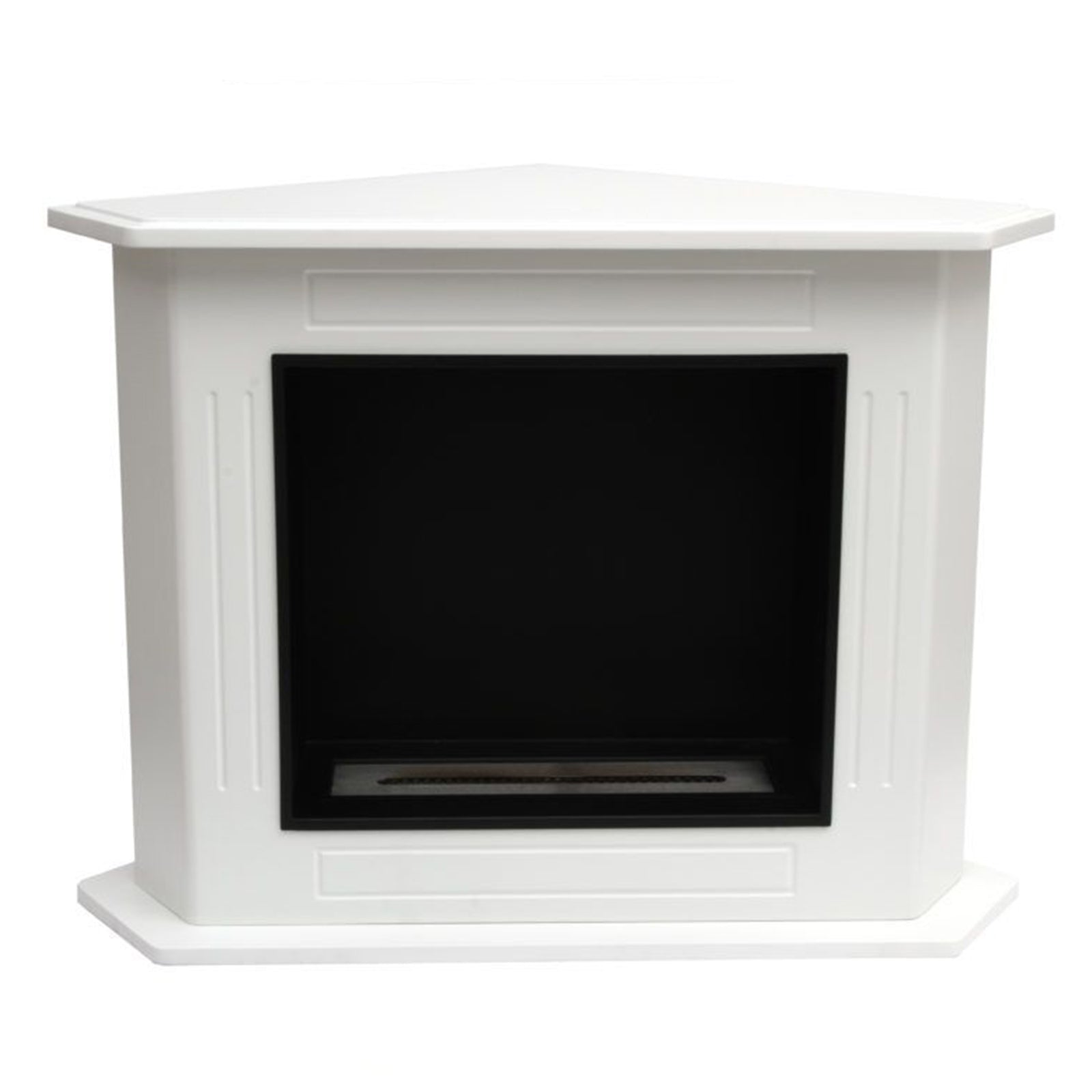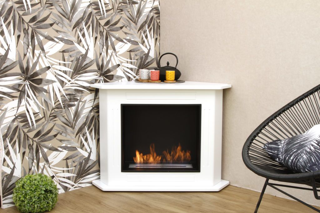 Prix régulier €749,90 Prix réduit €662,90Cheminée d'angle écologique au bioéthanol modèle Donatello avec cadre en bois travaillé blanc,
