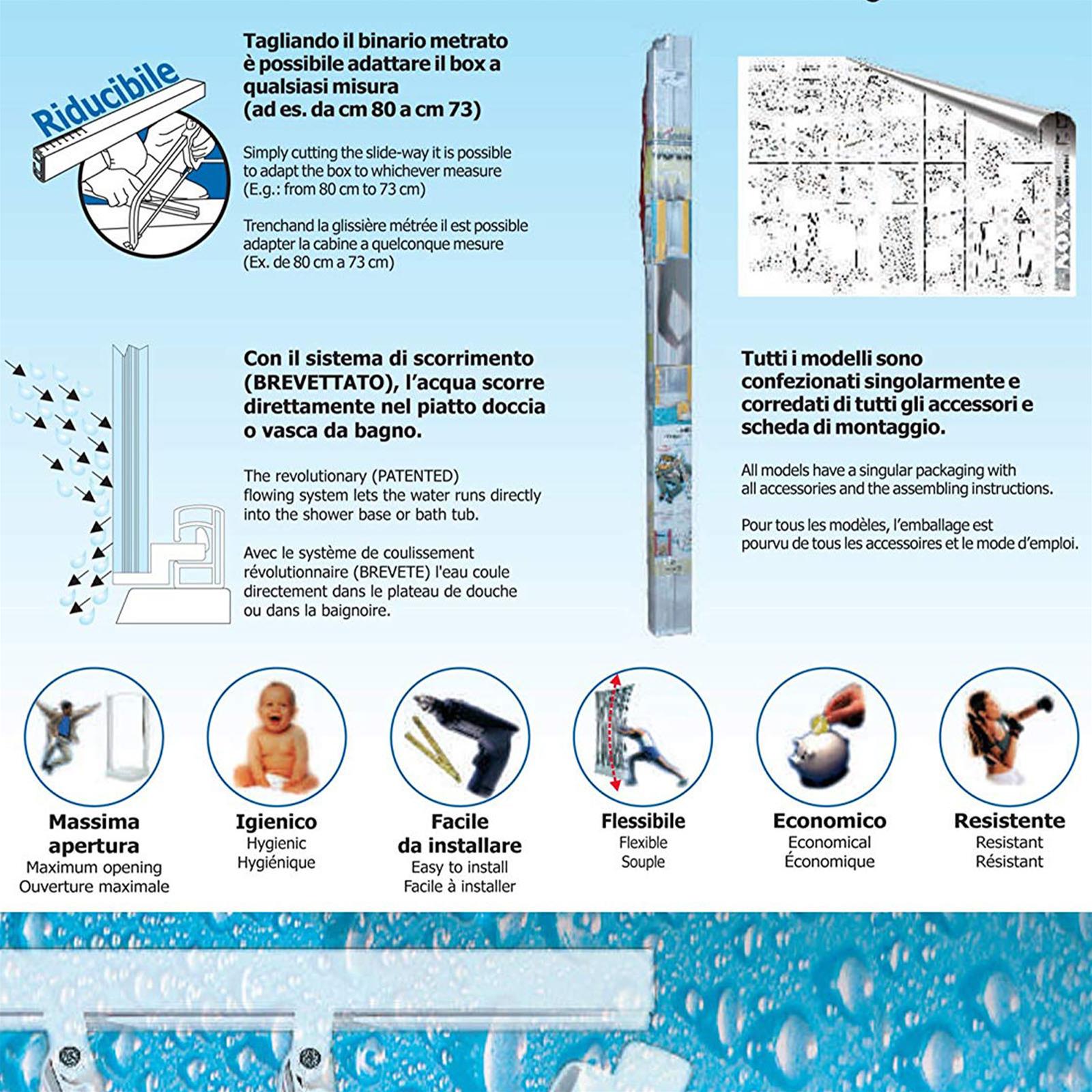 La réductibilité de la cabine de douche peut également être plus grande, même si pendant la phase de montage, il peut également être indispensable d'adapter le soufflet en retirant l'un des panneaux en PVC pré-assemblés.