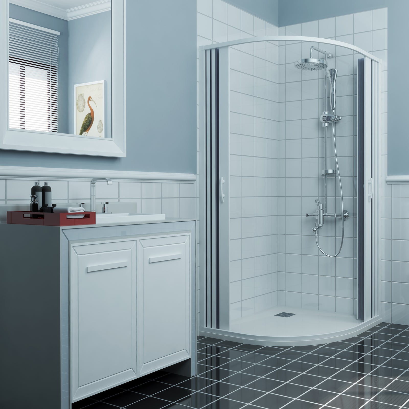 BOX DOCCIA CURVO RICHIUDIBILE 90-70 BIANCO APERTURA LATERALE CIRCOLARE A SOFFIETTO RIDUCIBILE SU MISURA