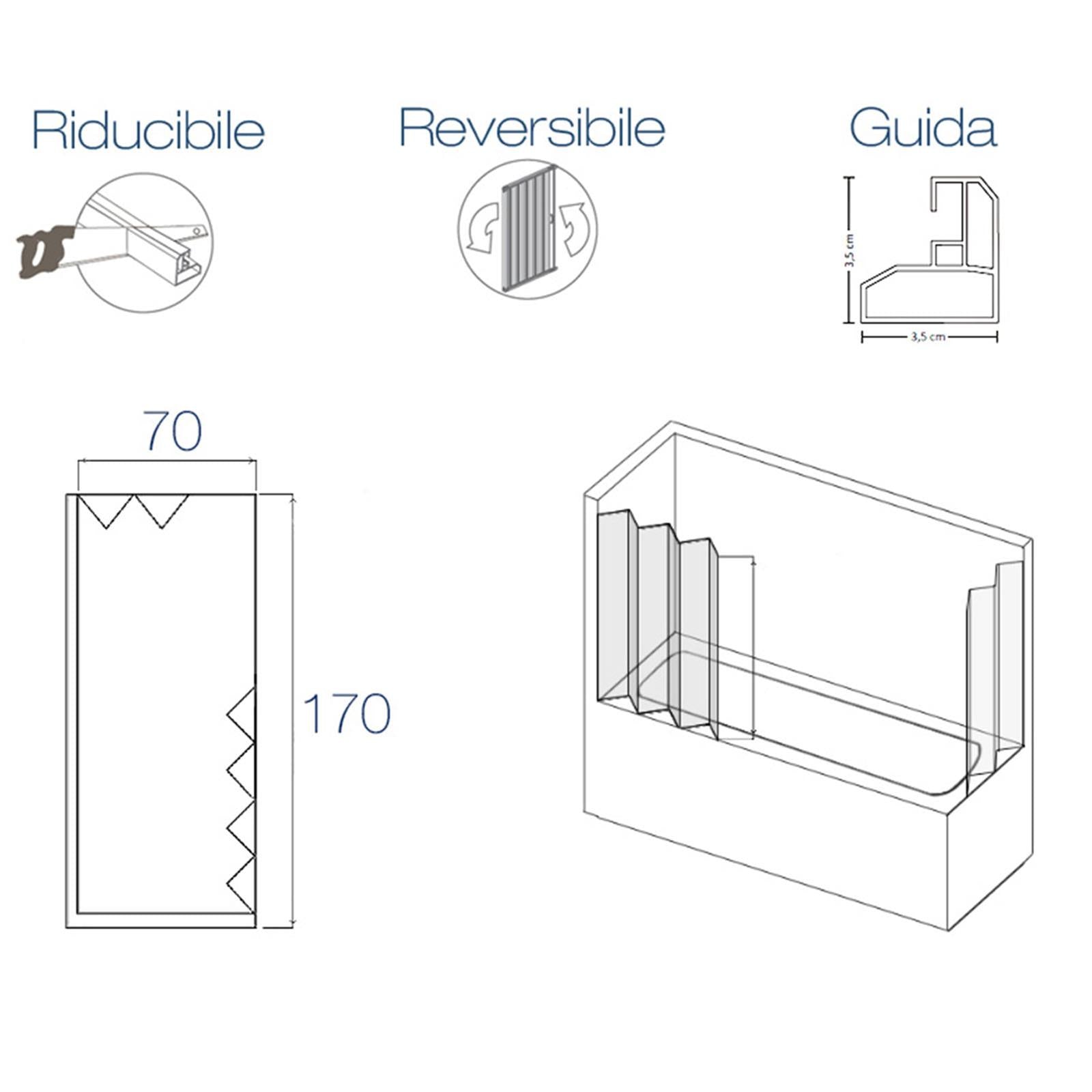 La réductibilité de la cabine de douche peut également être plus grande, même si pendant la phase de montage, il peut également être indispensable d'adapter le soufflet en retirant l'un des panneaux en PVC pré-assemblés.