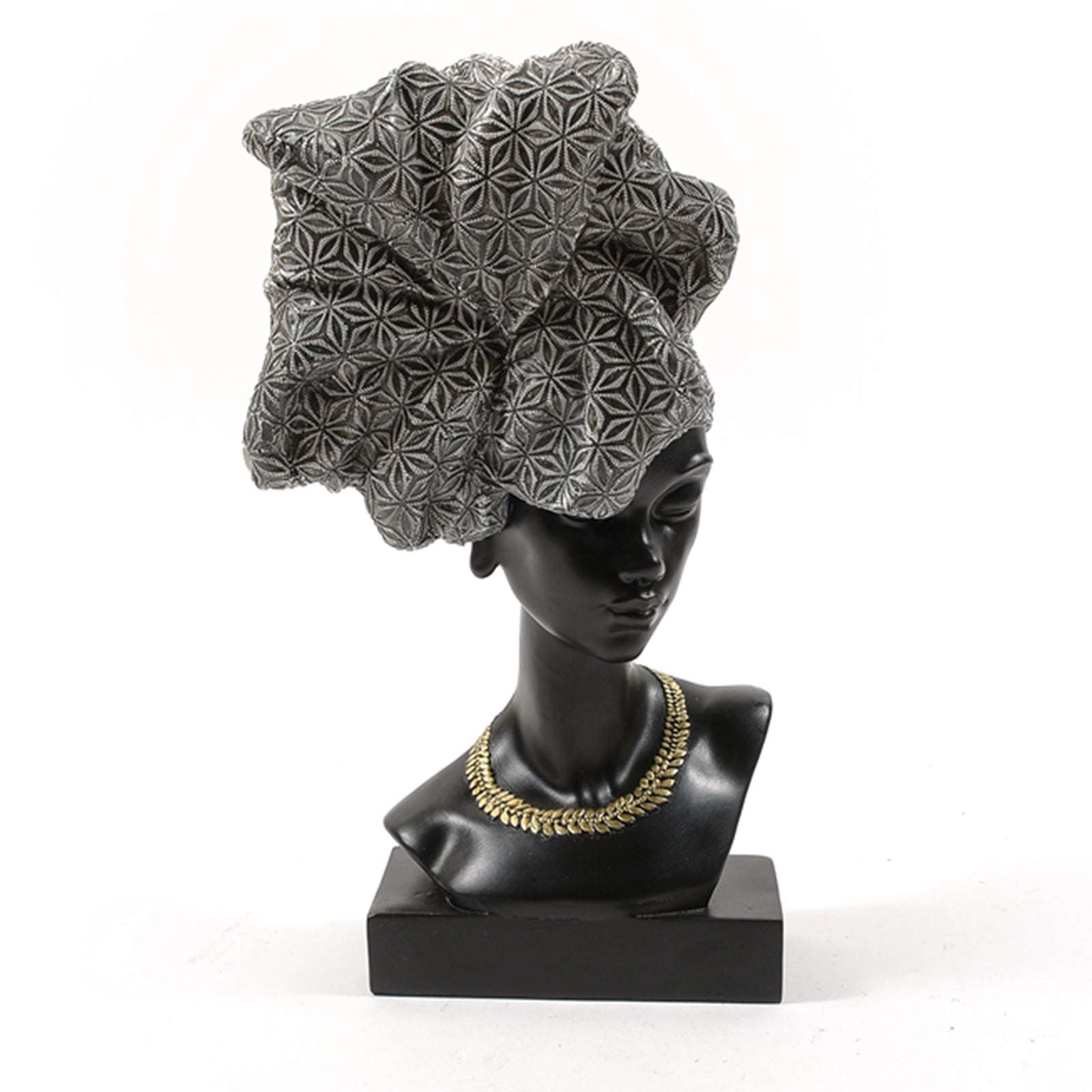 Buste décoratif en polyrésine statue visage de femme africaine "Perle d'Afrique" h 38 cm
