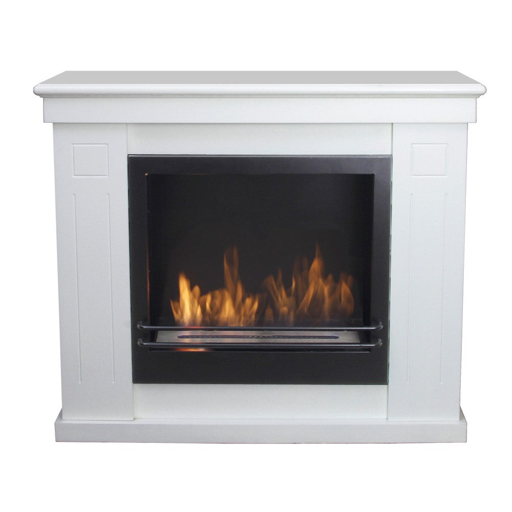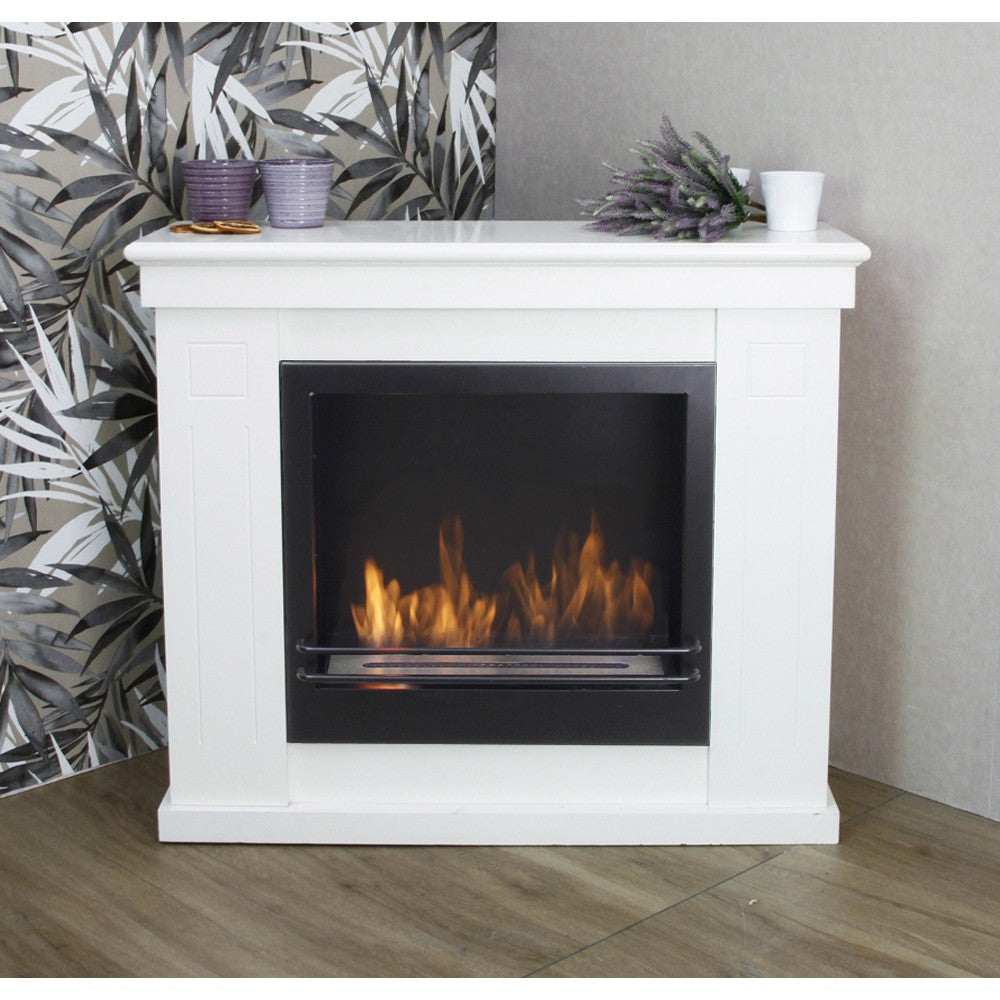 Prix régulier €624,90 Prix réduit €549,90Cheminée écologique modèle Raffaello avec cadre en bois travaillé blanc,