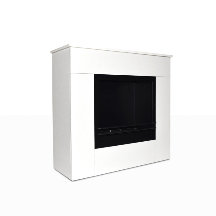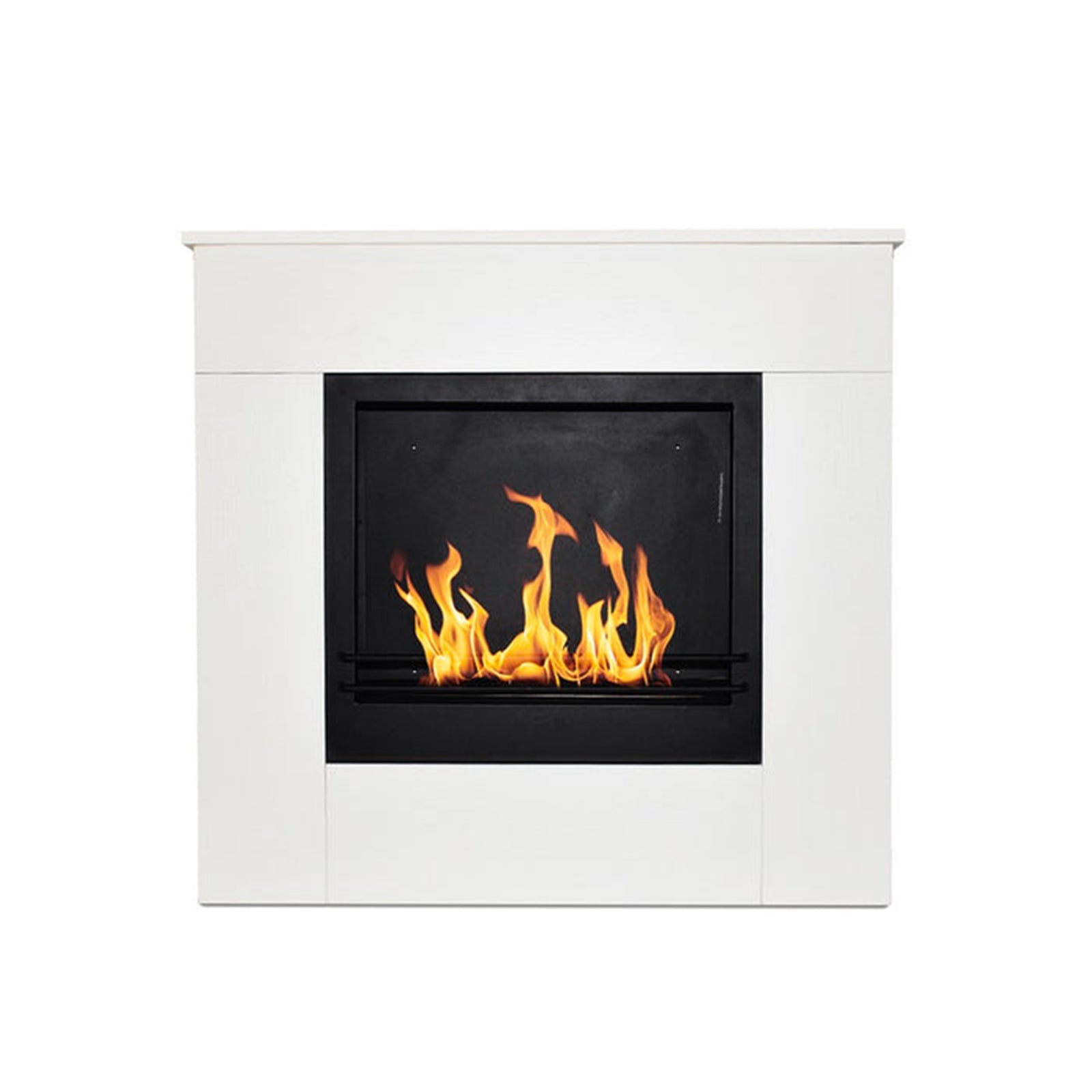Cheminée au bioéthanol "Michelangelo" au sol en bois blanc, biocheminée d'intérieur h 90 cm